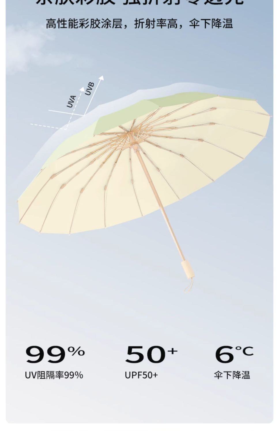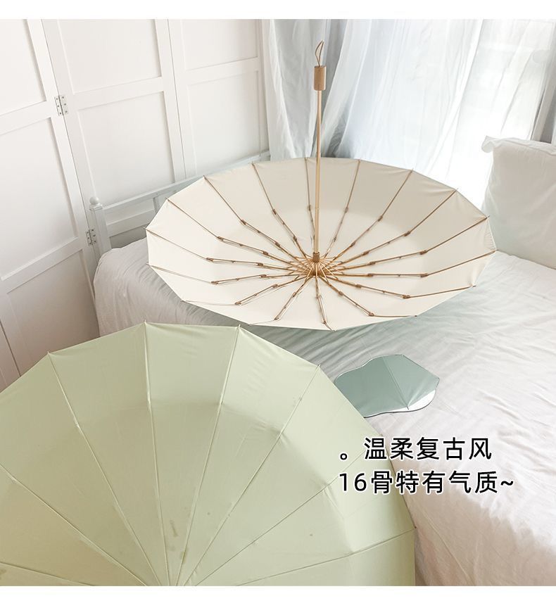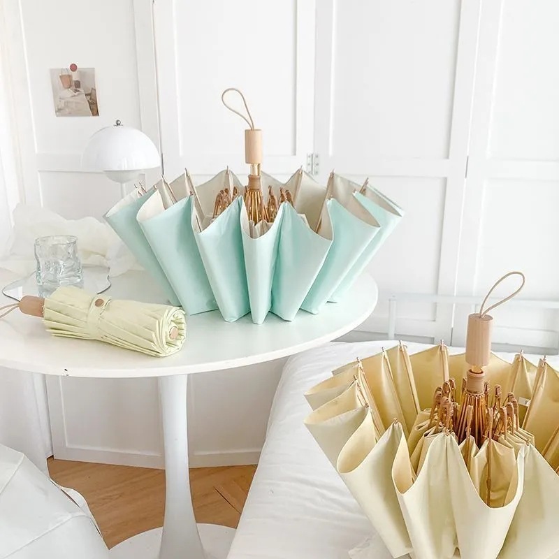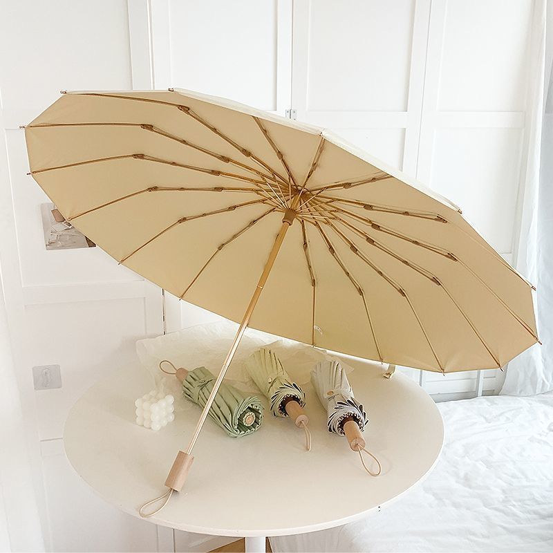 manual folding umbrella 16k [color plastic] [wooden handle] light beige sunny yuzhihe