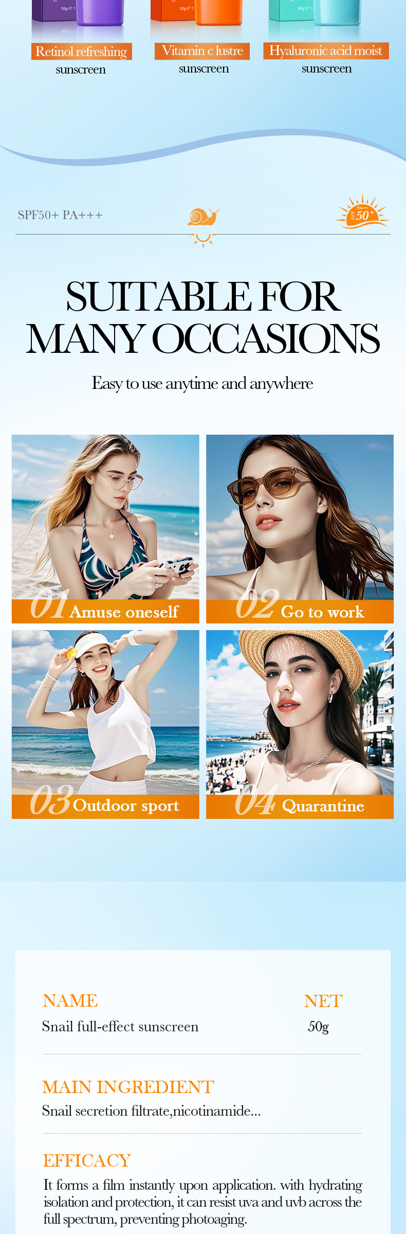 specifications: snail sunscreen 50g [only for export and sale, prohibited domestic