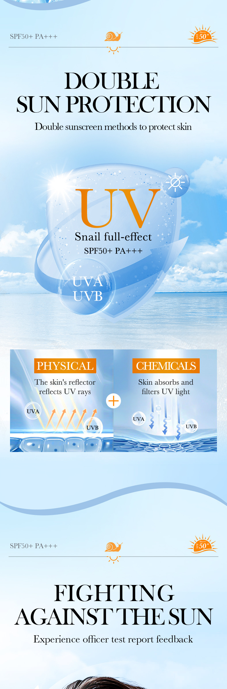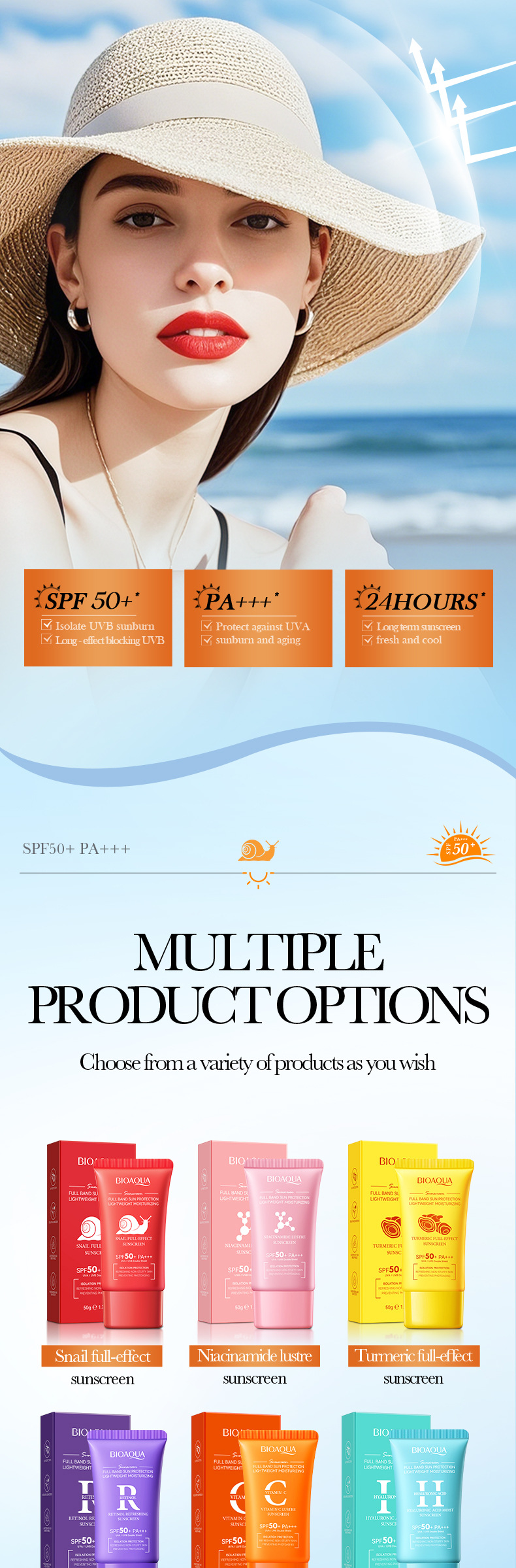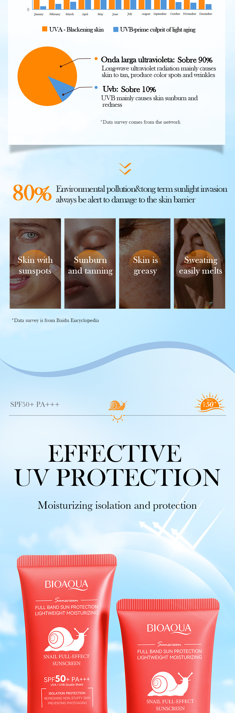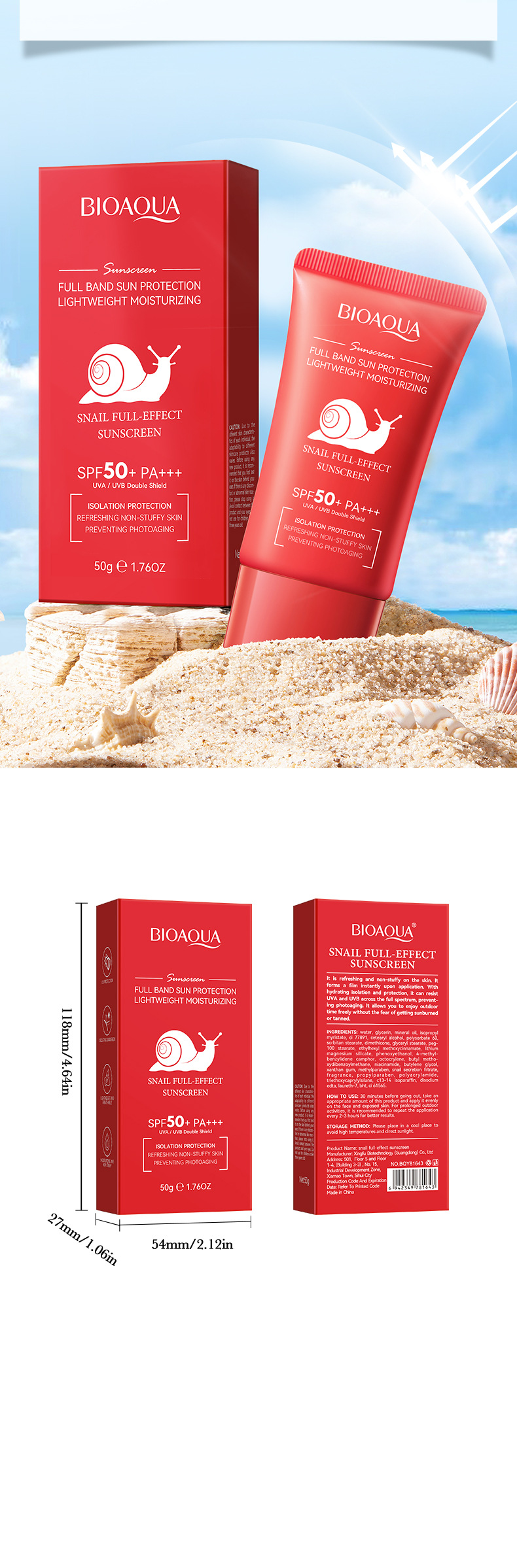 product name: bioaoua snail full-effect sunscreen spf50 +