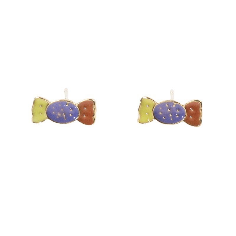 sterling silver needle small colorful candy stud earrings female earrings special-interest design south korea dongdaemun cartoon earrings