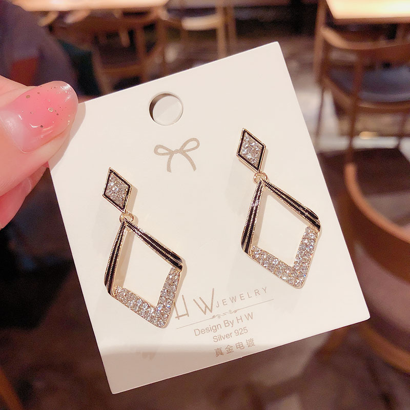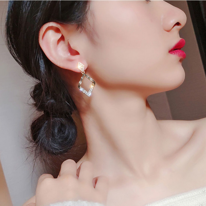 925 silver needle new rectangular diamond-studded earrings temperament korean style personal influencer geometric scallop earrings eardrop jewelry