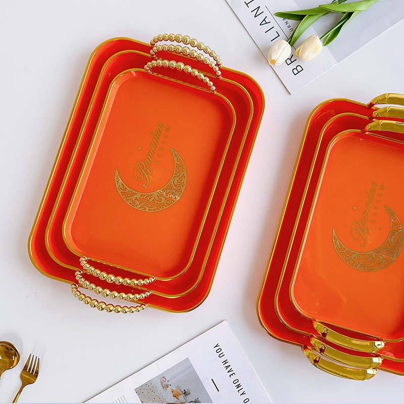 beads handle rectangular plate three-piece set [with color box]