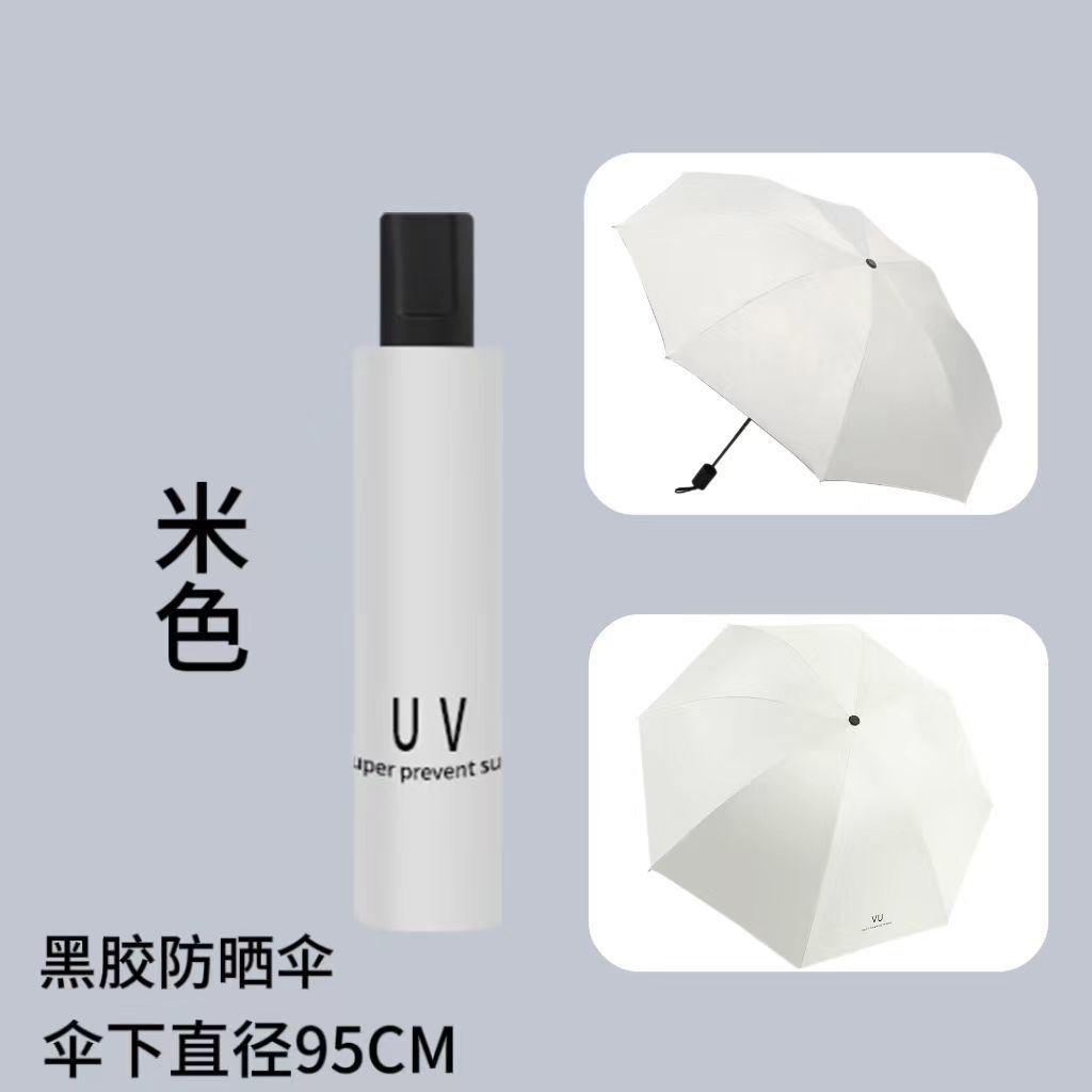 manual 8-rib uv black rubber umbrella diameter 96cm [beige]