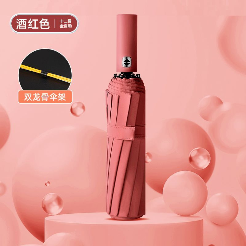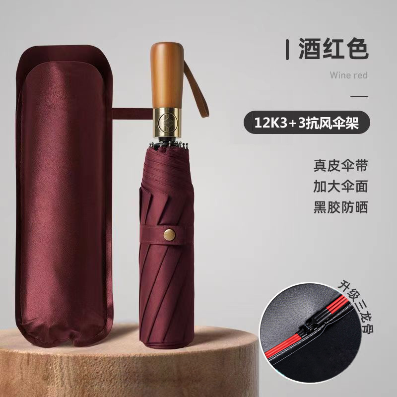 solid wood 12k3+3 automatic black rubber umbrella diameter 106cm [wine red]