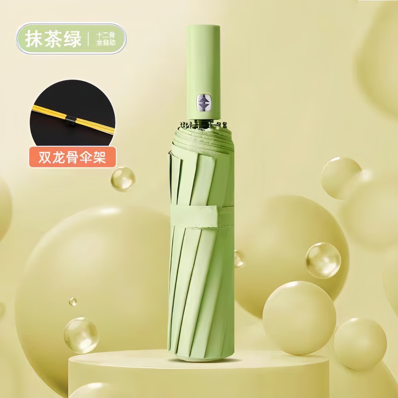 24 double-rib automatic black rubber umbrella diameter 106cm [matcha green]