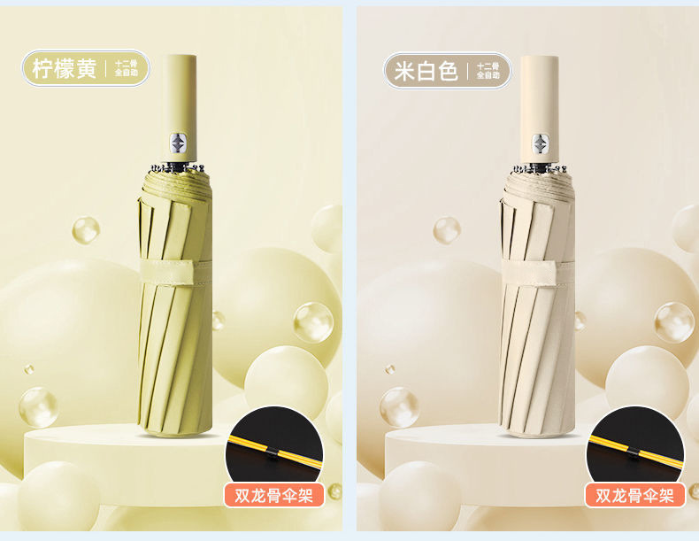 24 double-rib automatic black rubber umbrella diameter 106cm [paulownia beige]