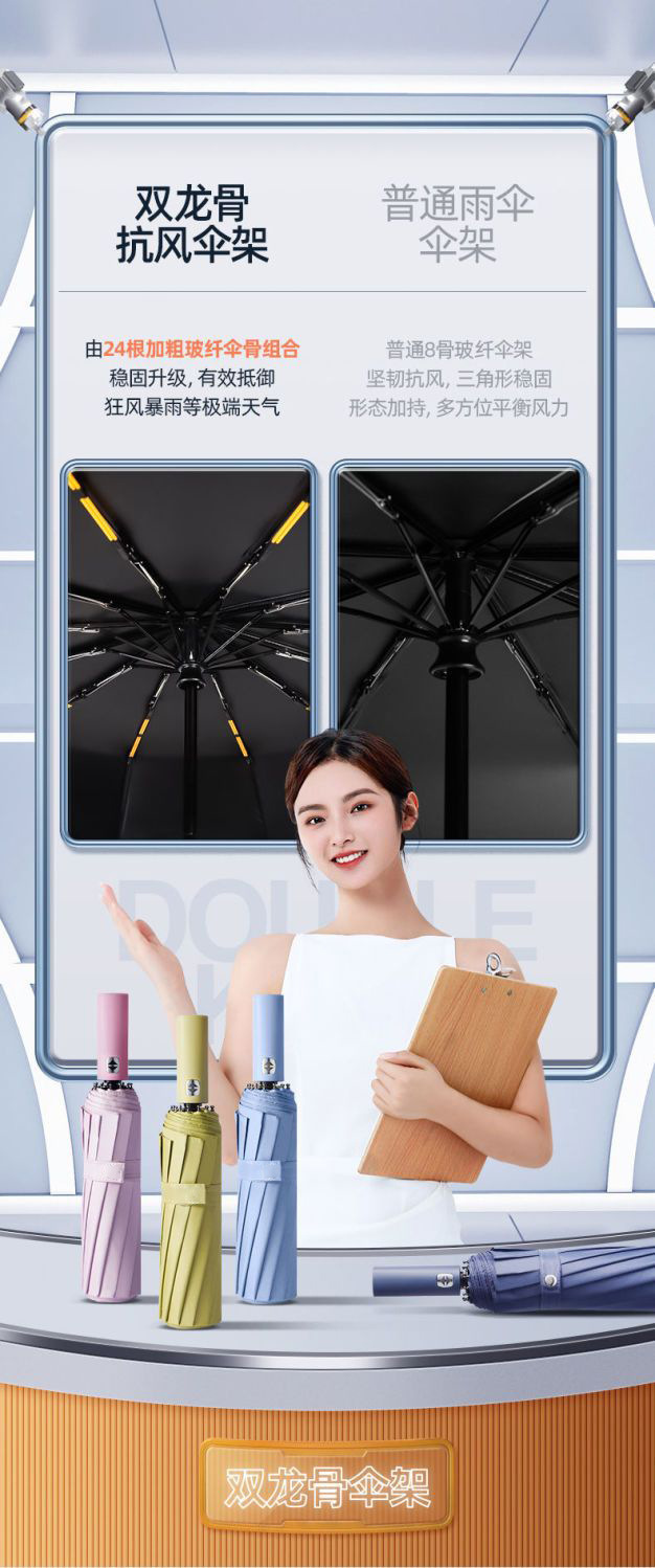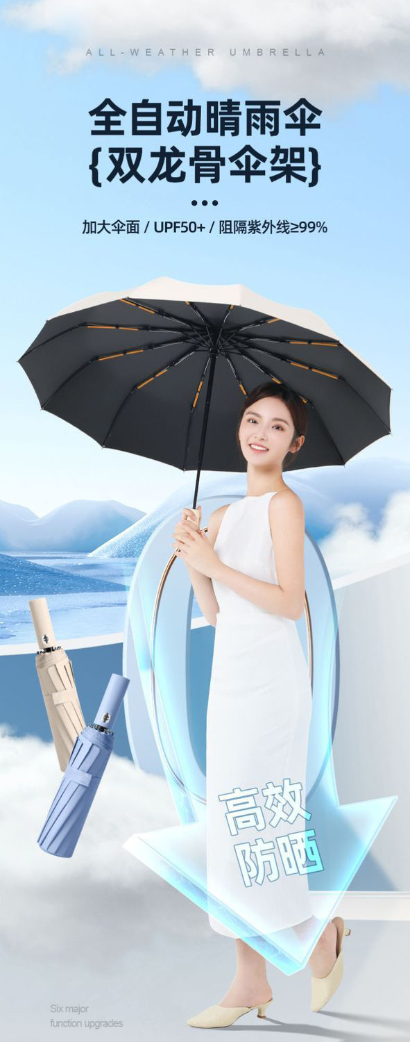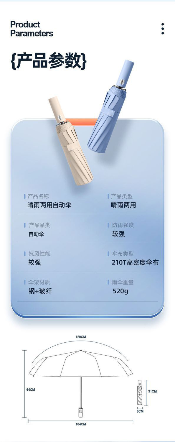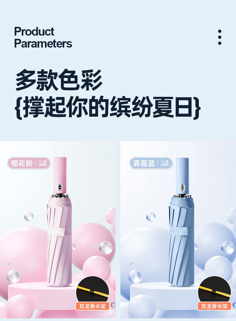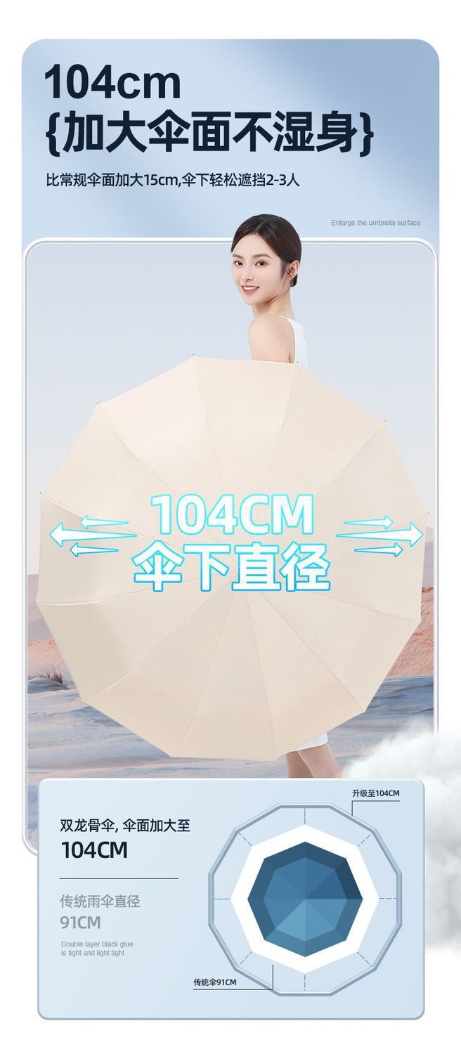 24 double-rib automatic black rubber umbrella diameter 106cm [sky blue]