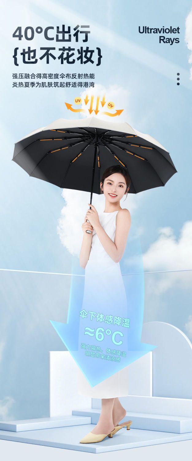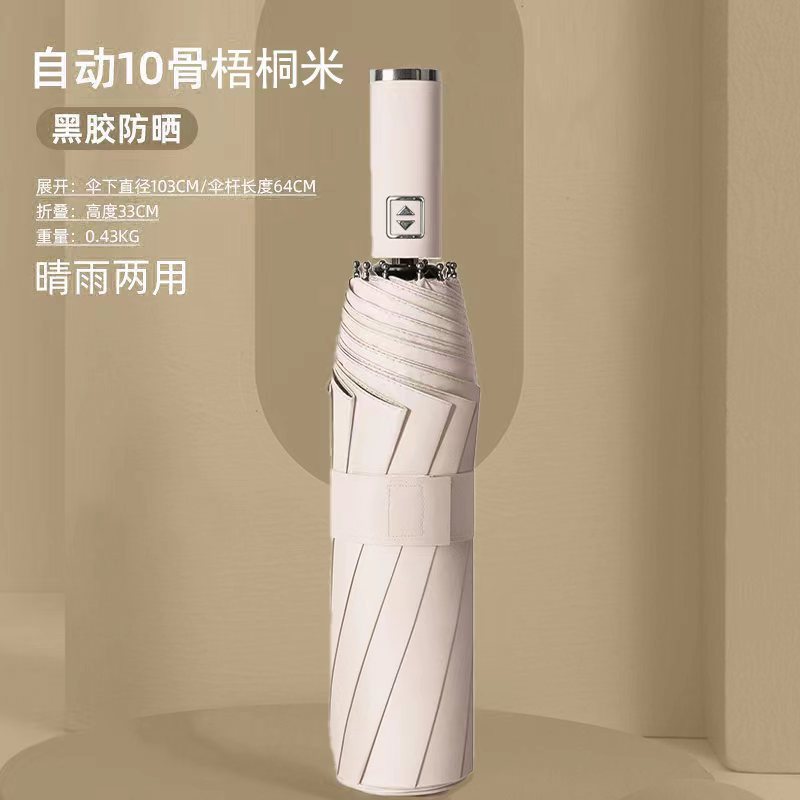 automatic 8-rib uv black rubber umbrella diameter 96cm [beige]
