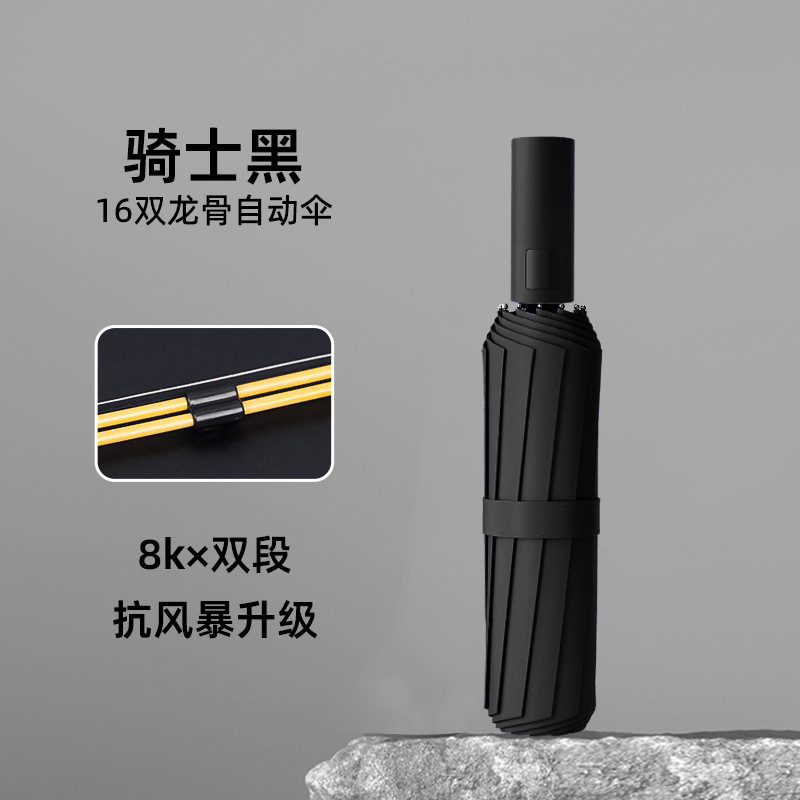 24 double-rib automatic black rubber umbrella, 106cm diameter [obsidian black]