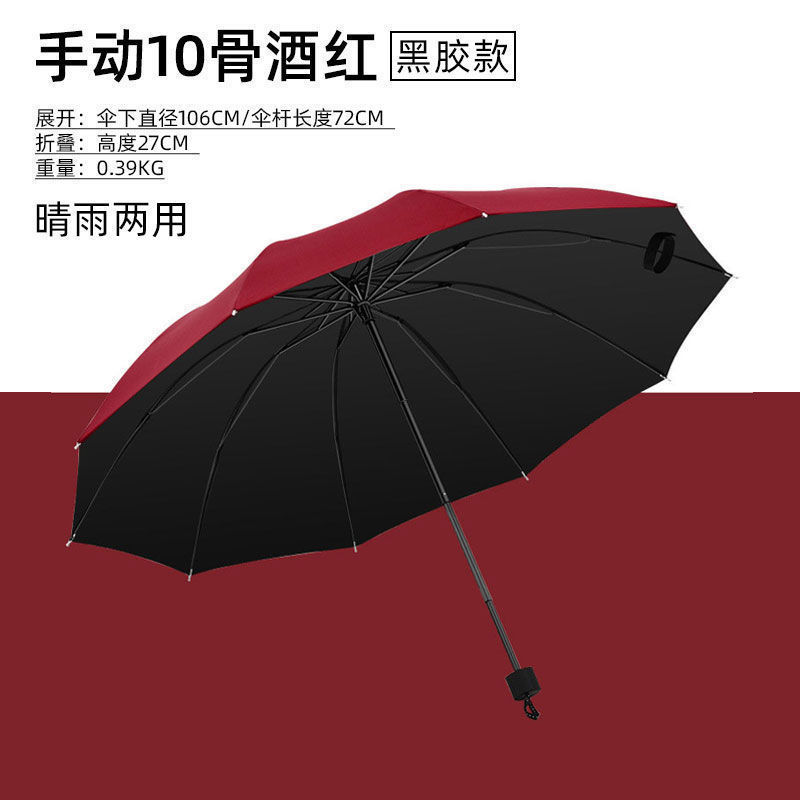 manual 8-rib uv black rubber umbrella diameter 96cm [black]