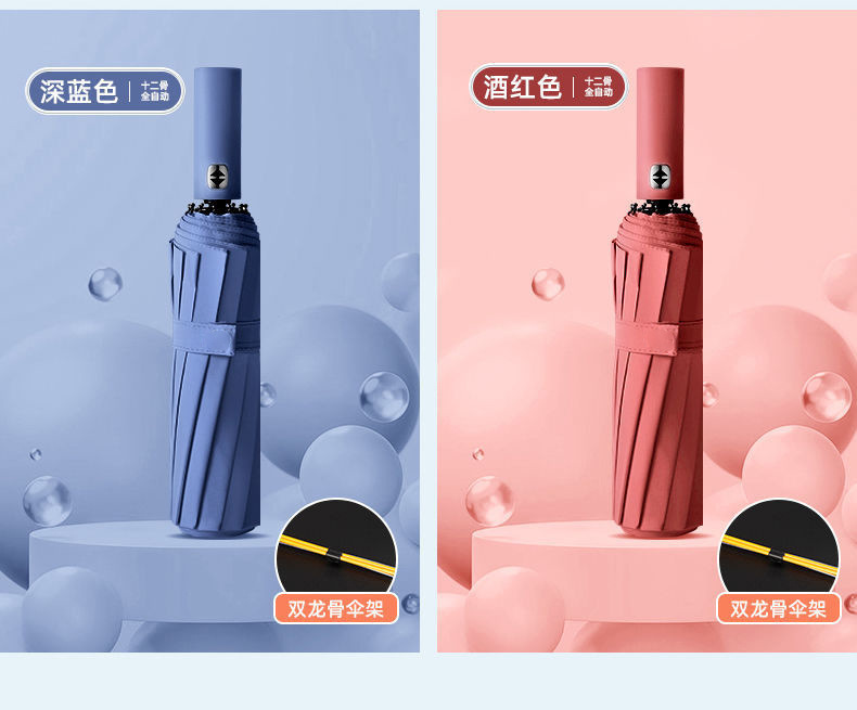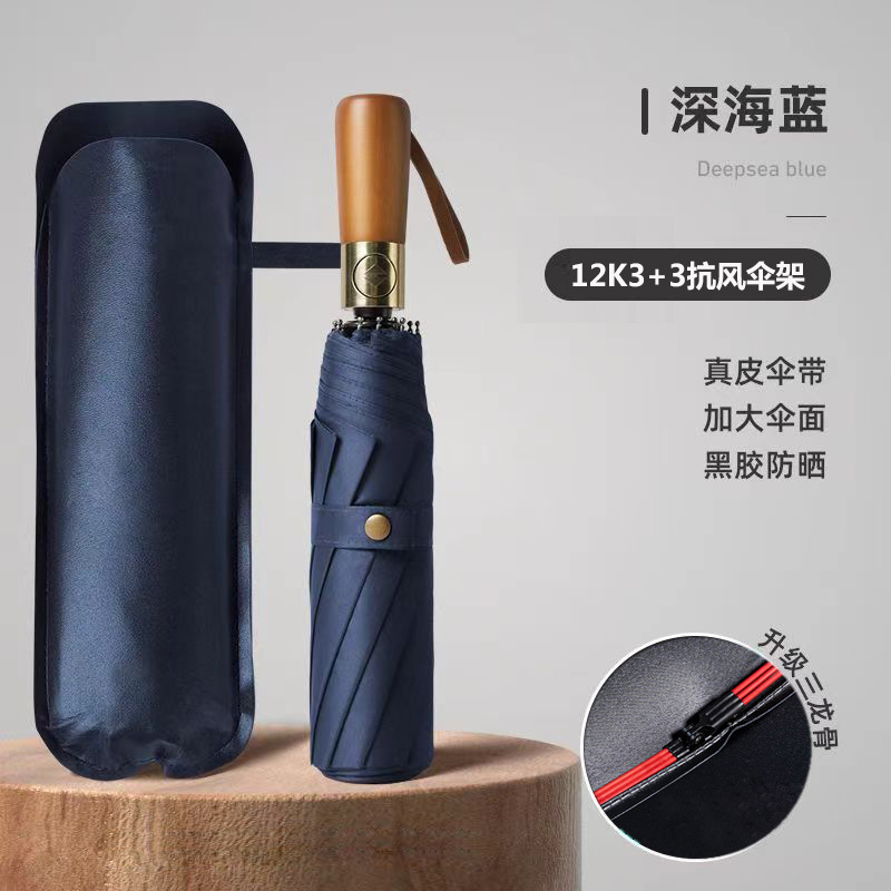 solid wood 12k3+3 automatic black rubber umbrella diameter 106cm [navy blue]
