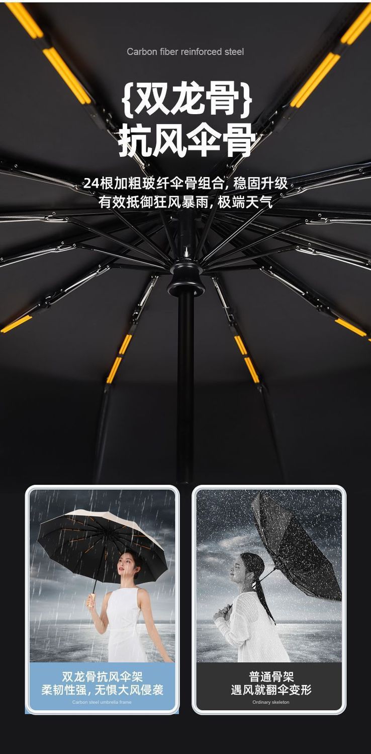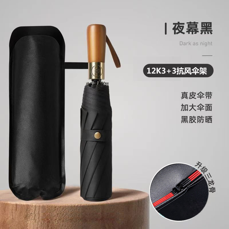 solid wood 12k3+3 automatic black rubber umbrella diameter 106cm [black]