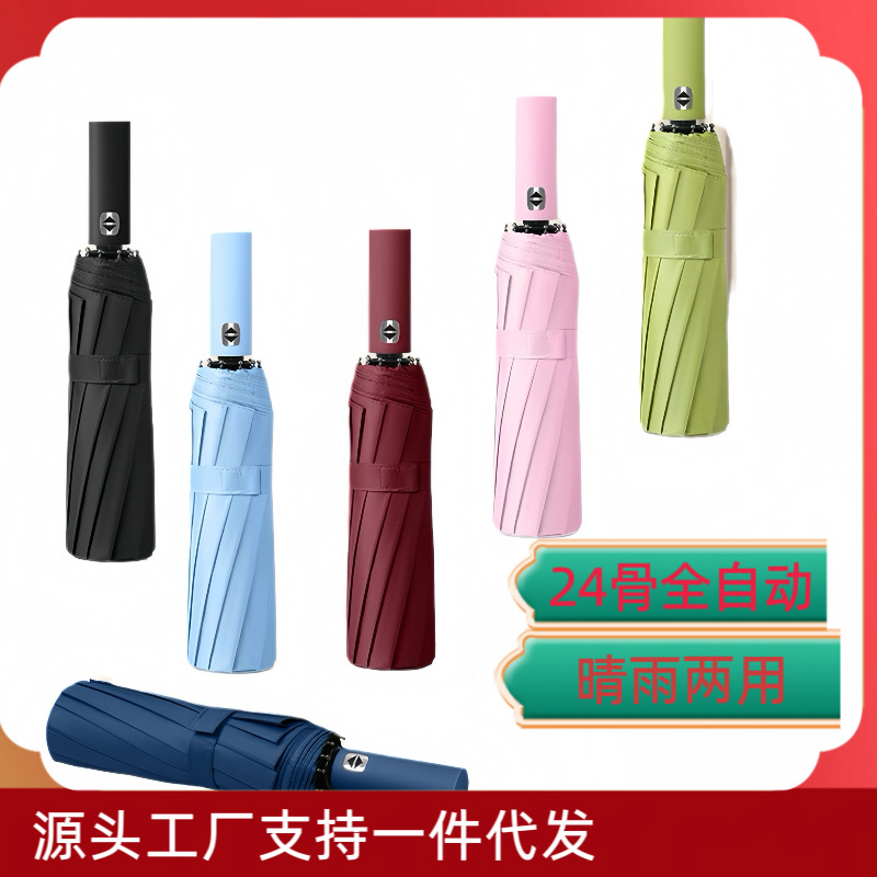 24 double-rib automatic black rubber umbrella diameter 106cm [wine red]