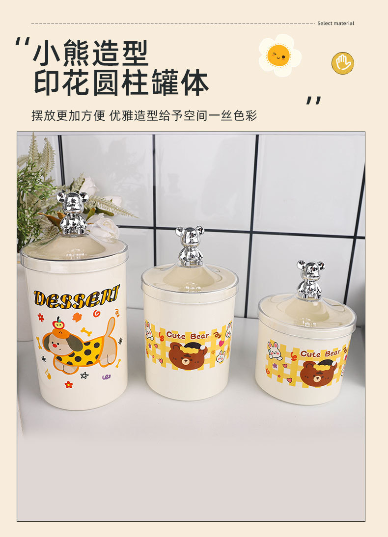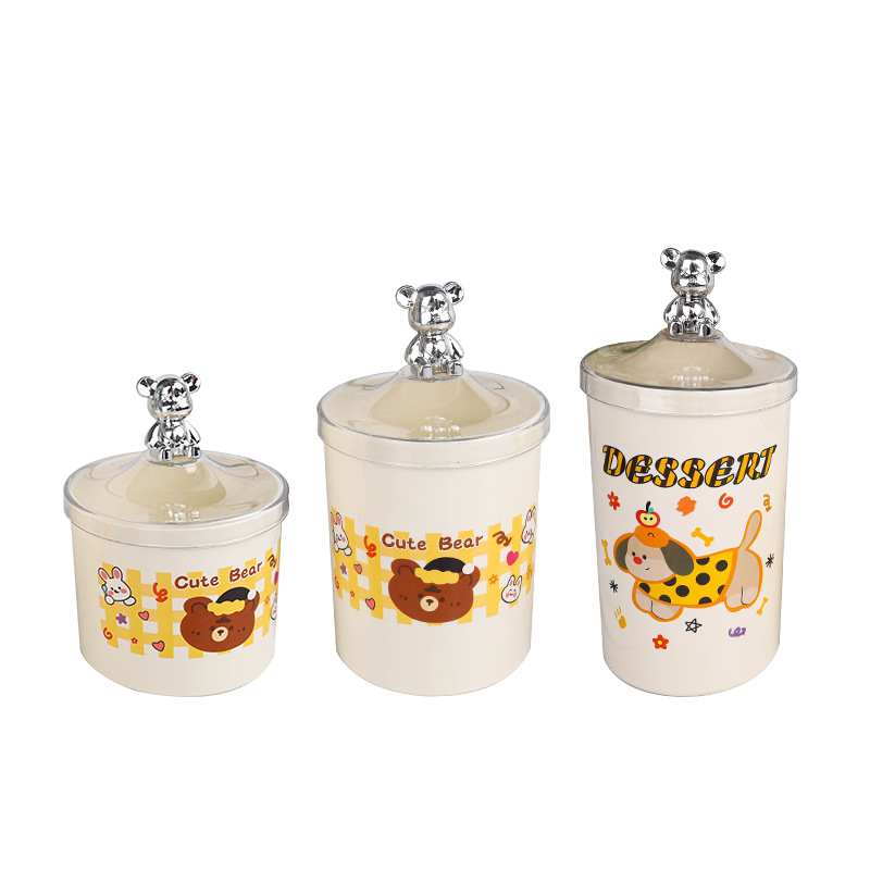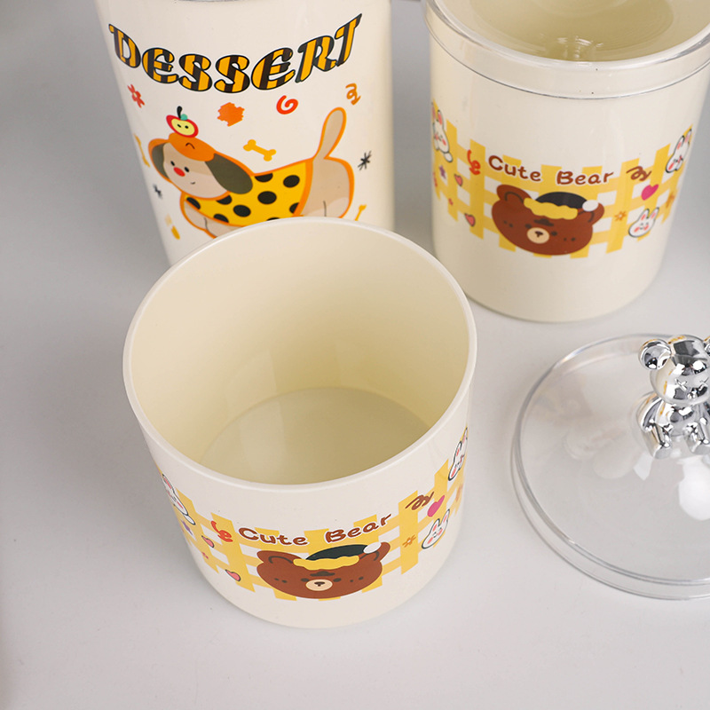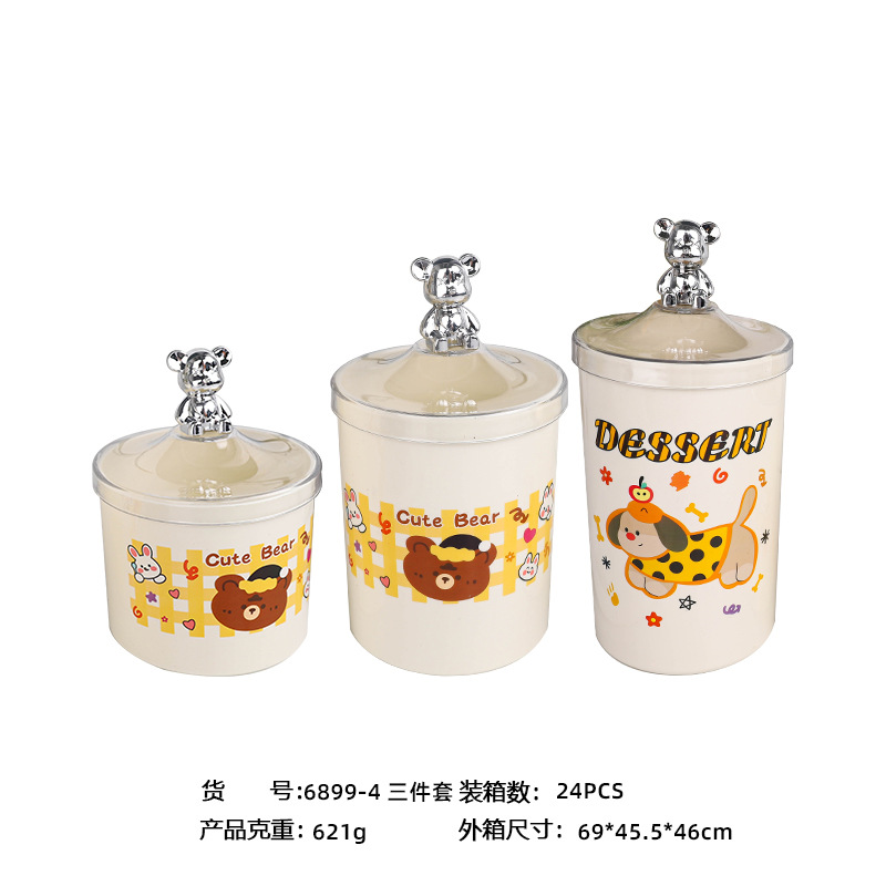 bear-handle european-style canister set, three pieces, printed design