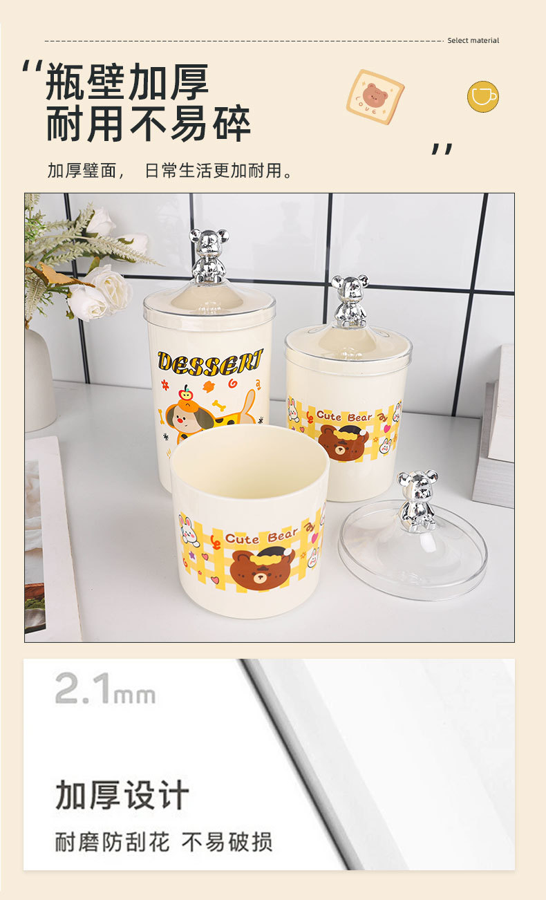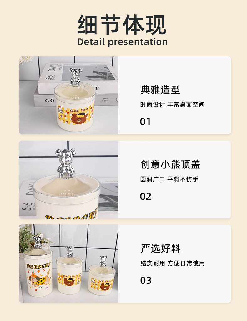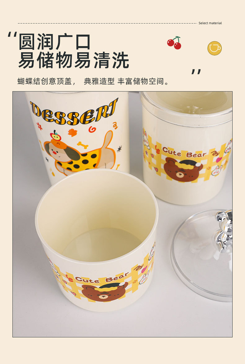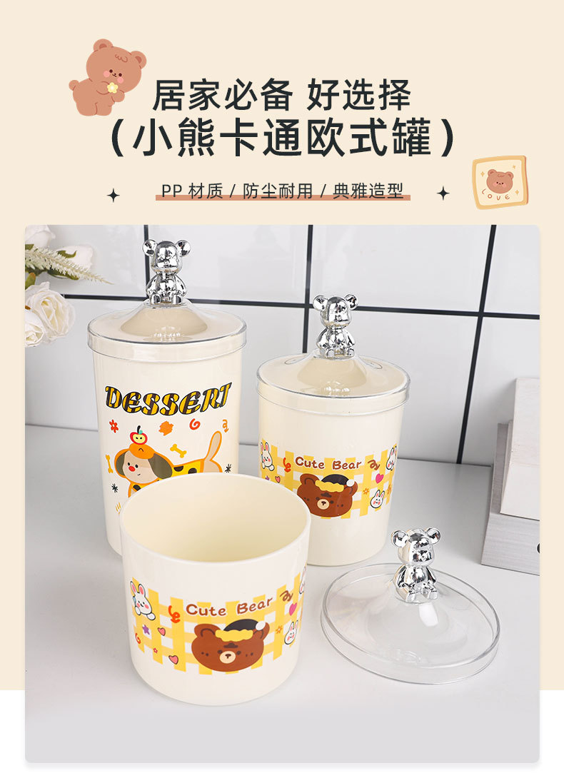 bear-handle european-style canister set, three pieces, printed design