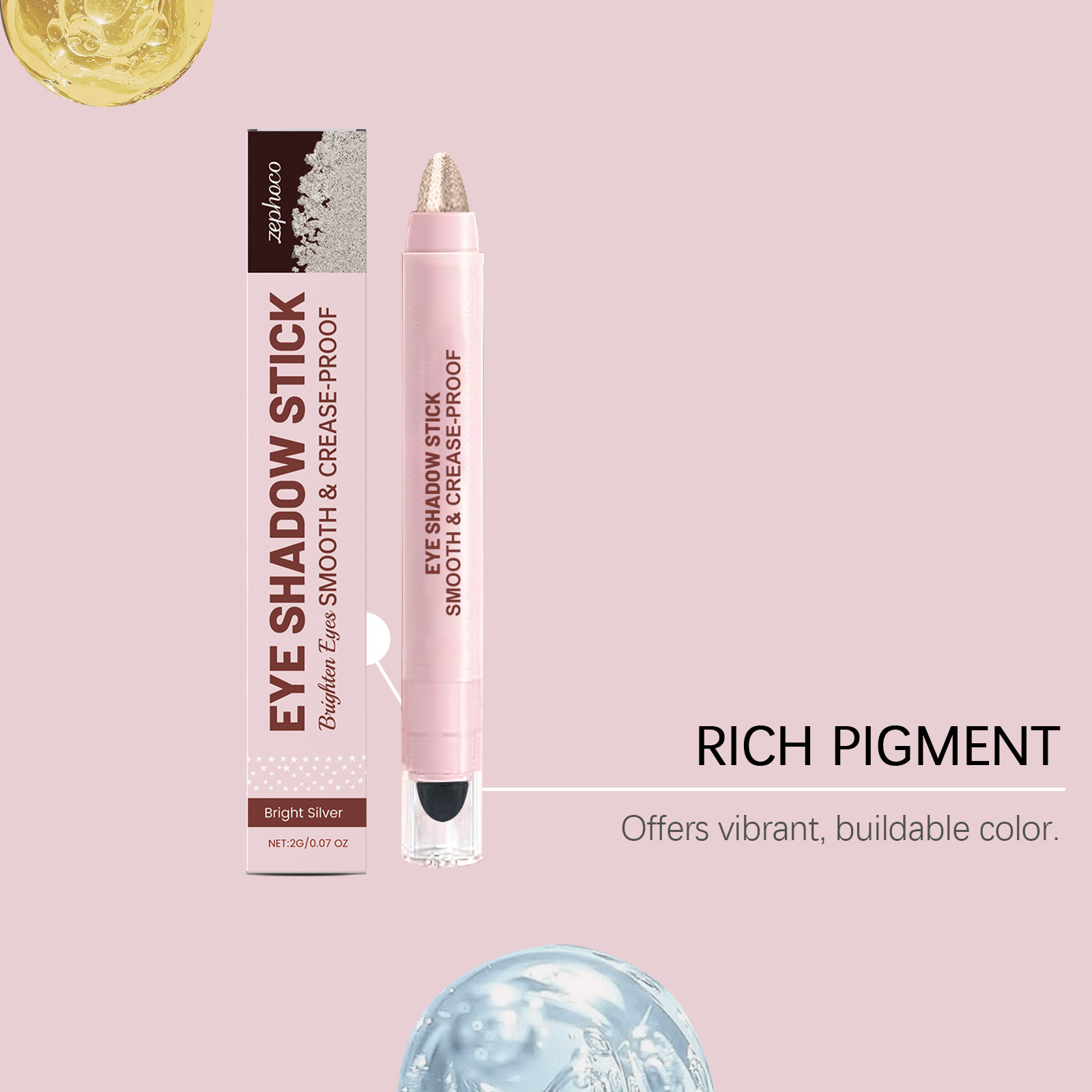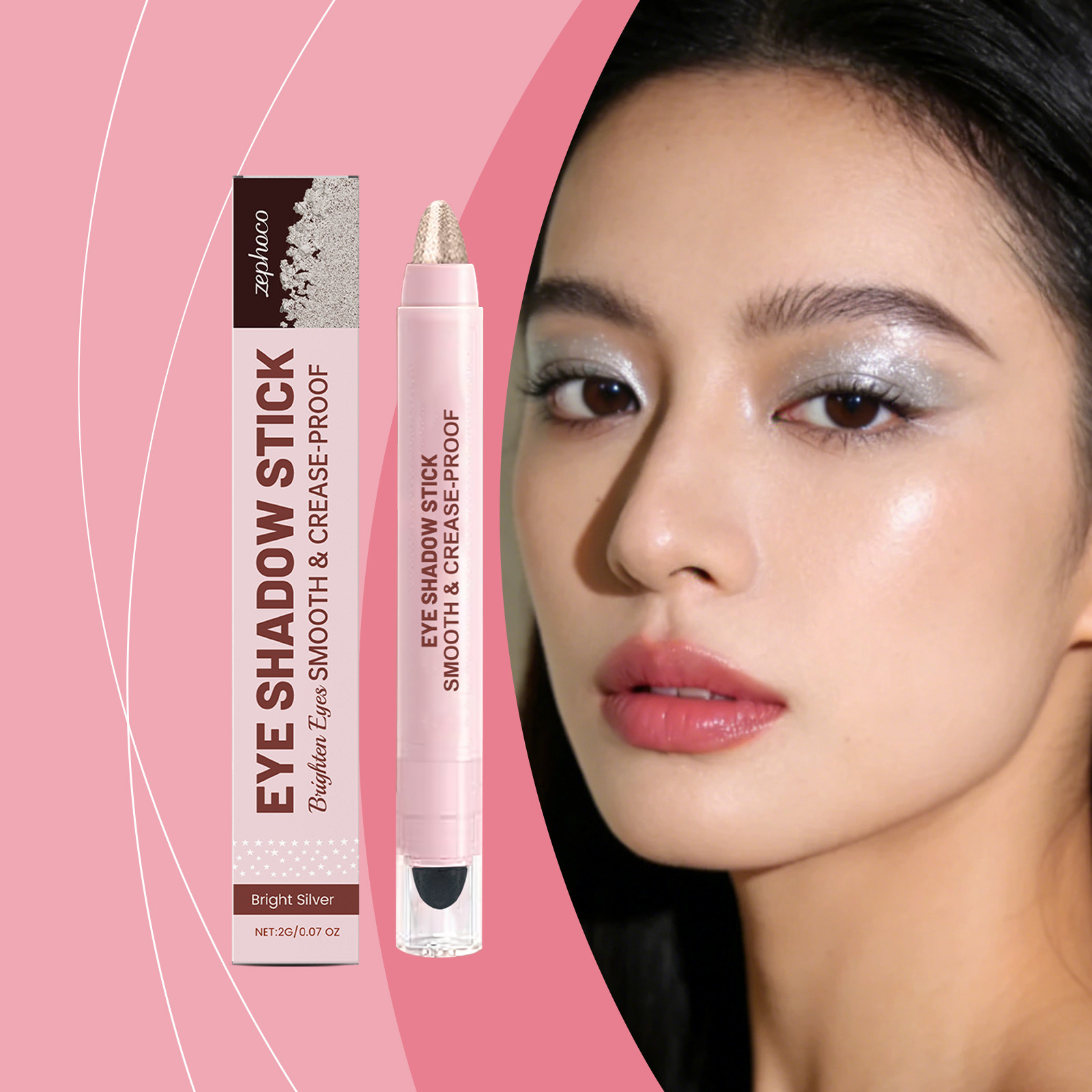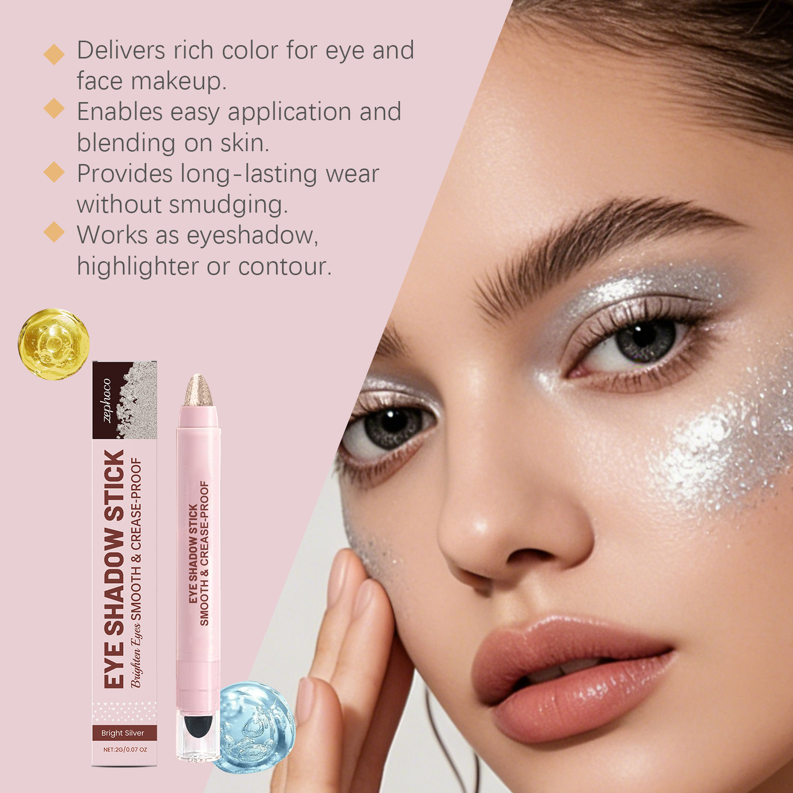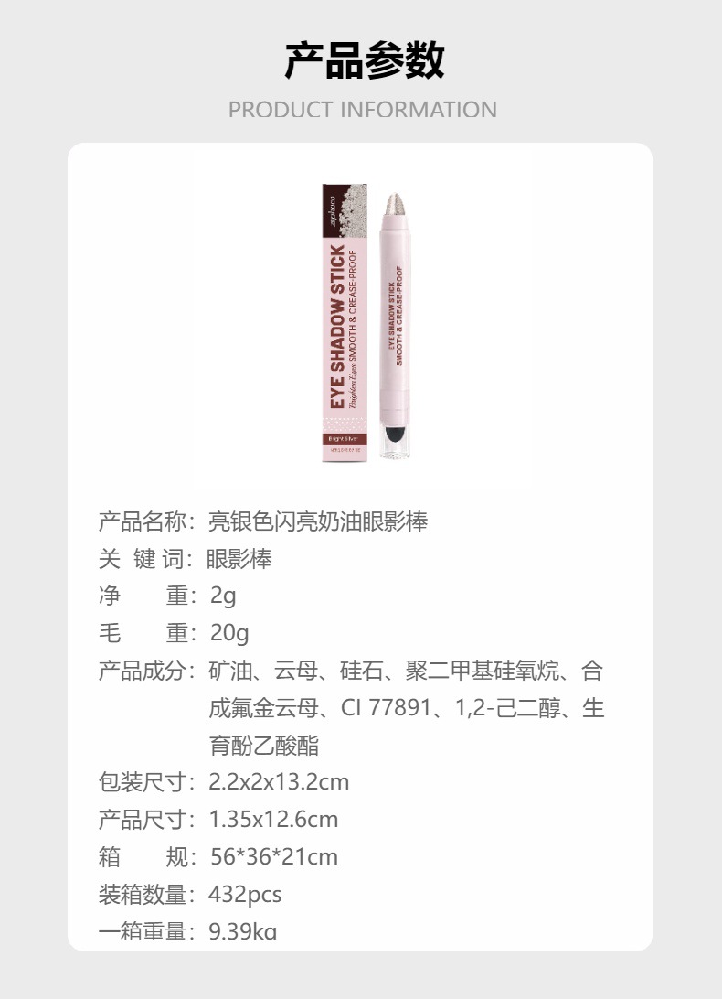 zephoco bright silver shiny cream eye shadow stick bright color rendering discoloration resistant crystal sequins eye shadow stick