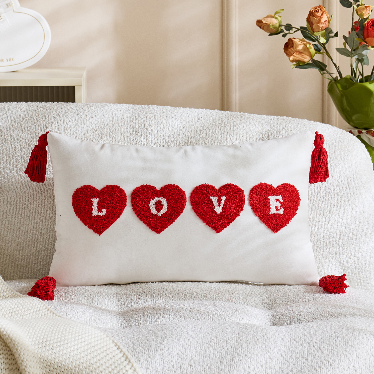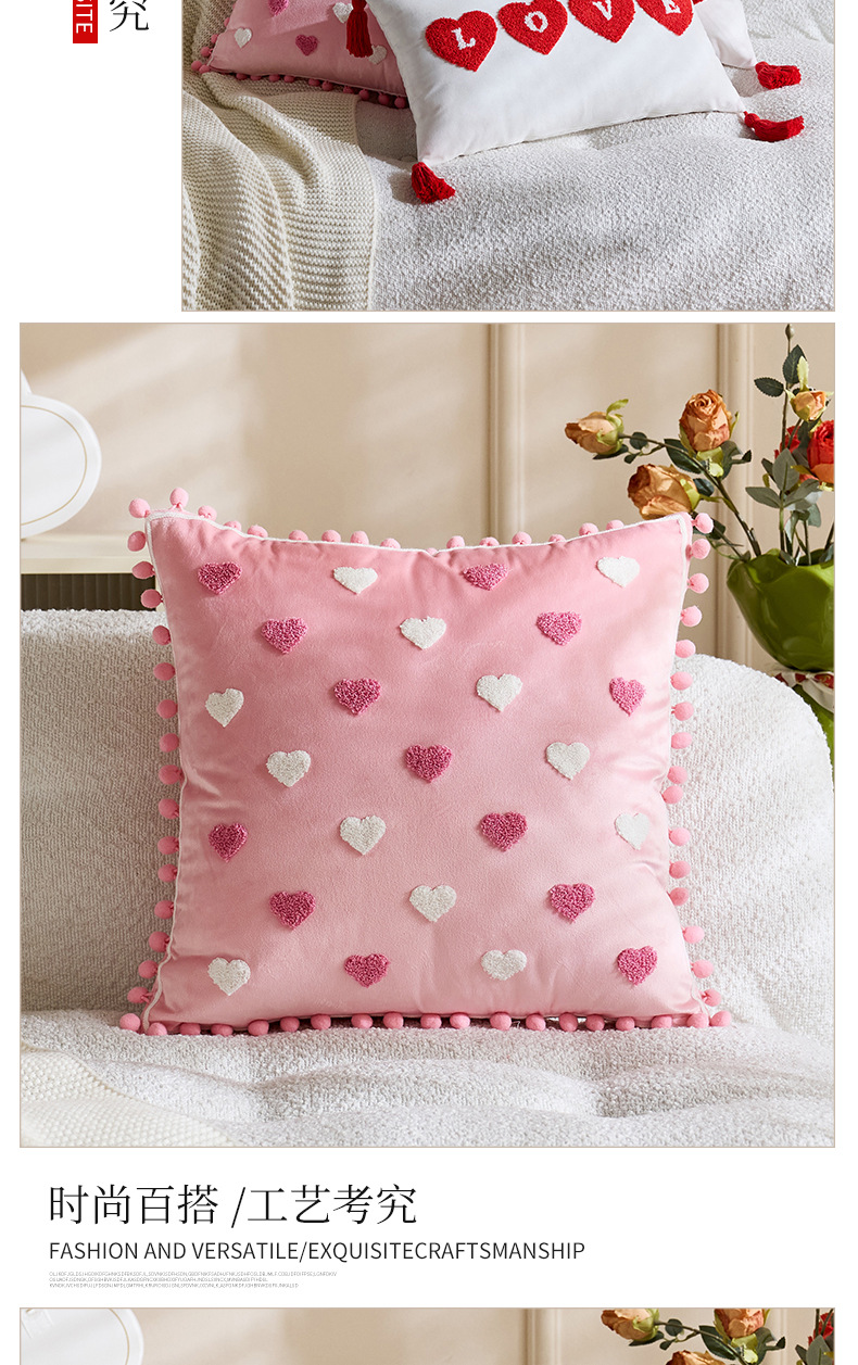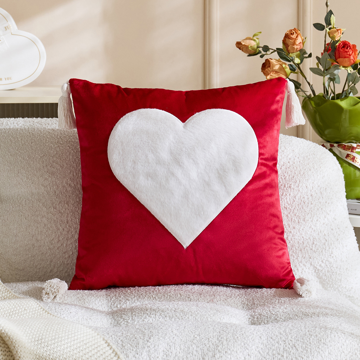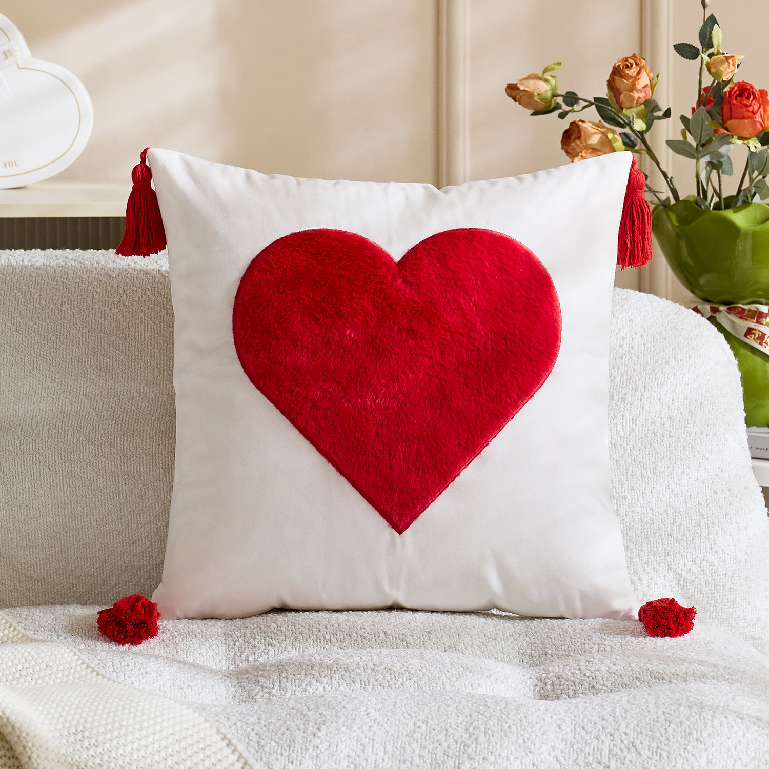 color: tassel white love 45*45, tassel red love 45