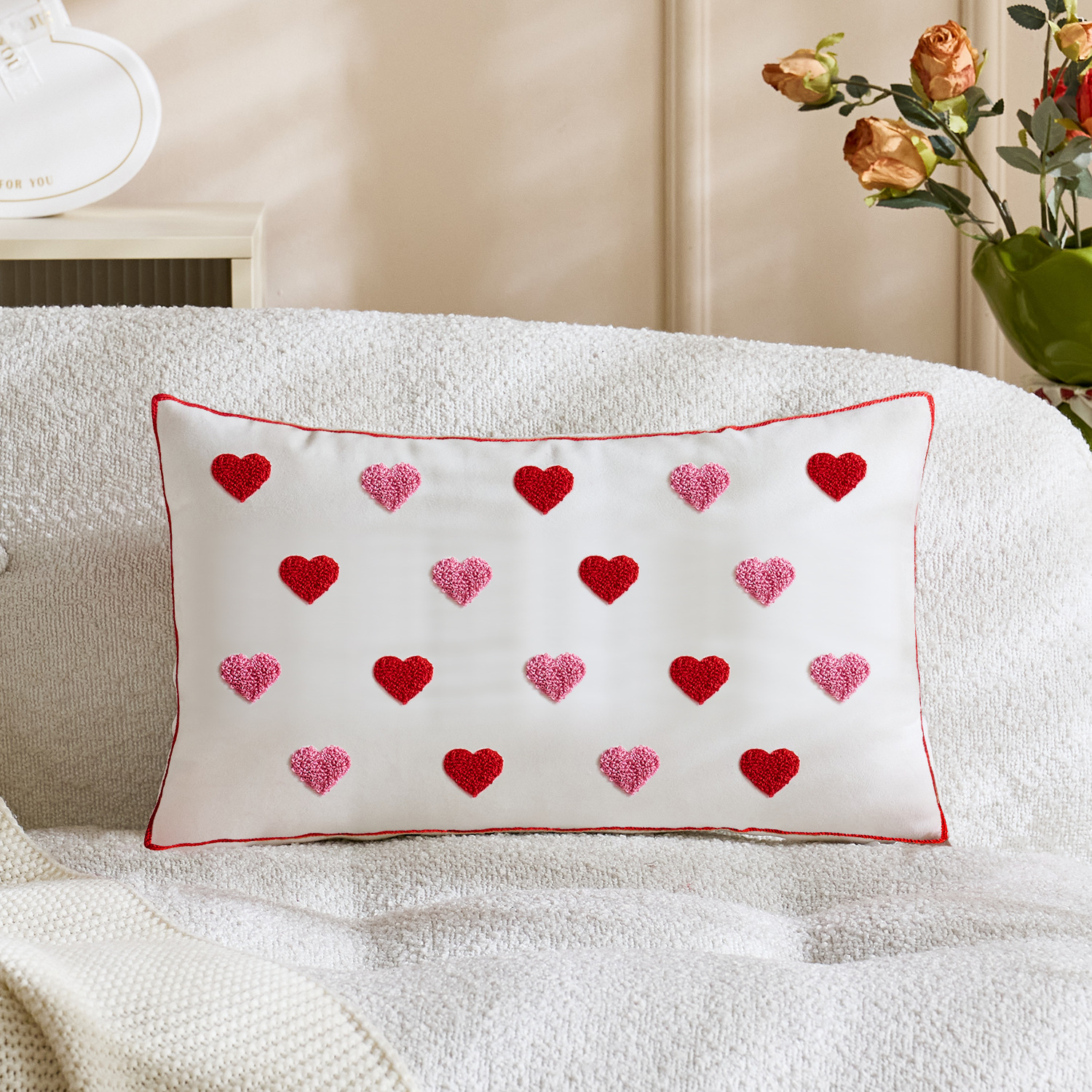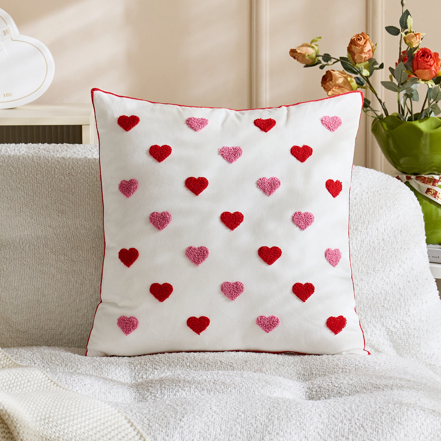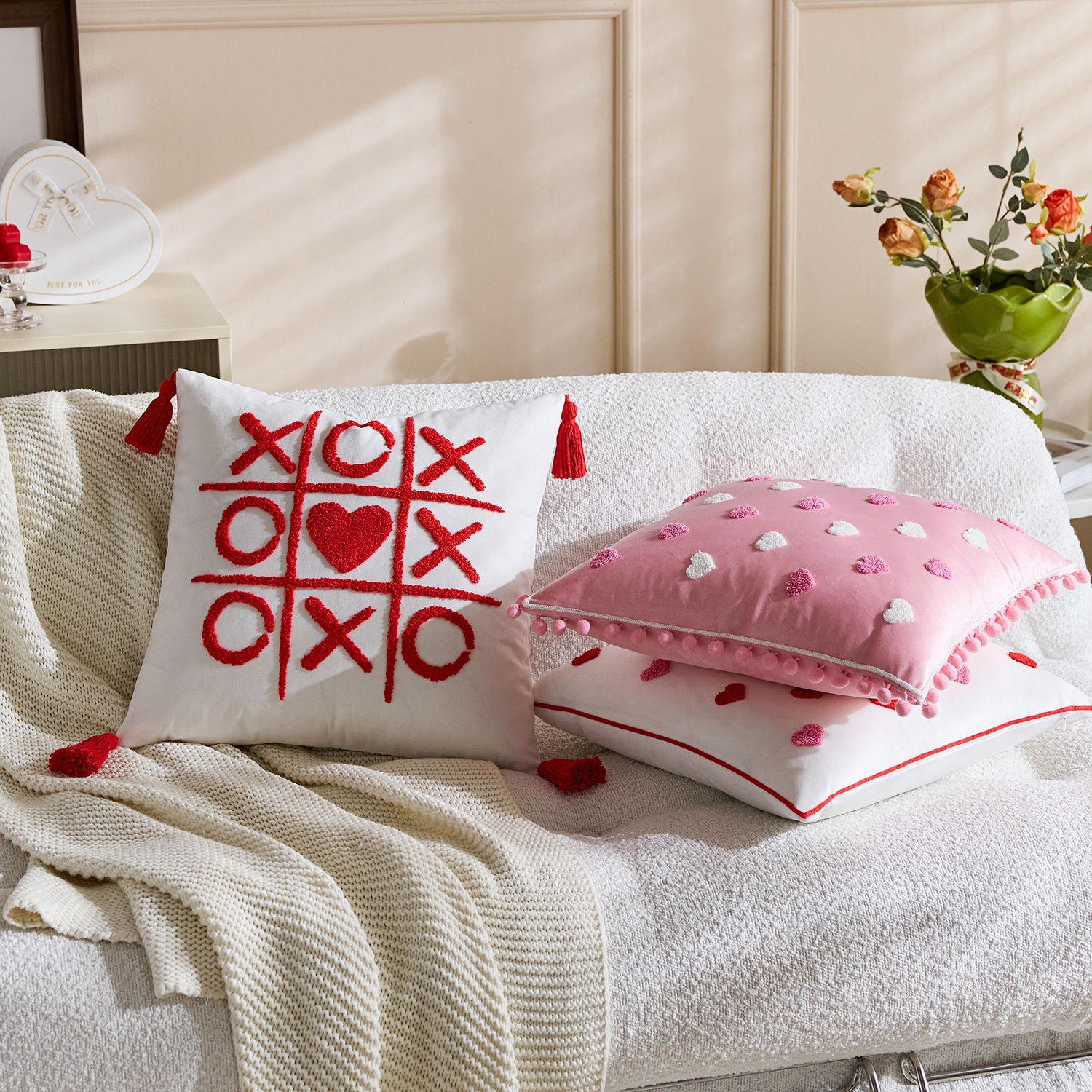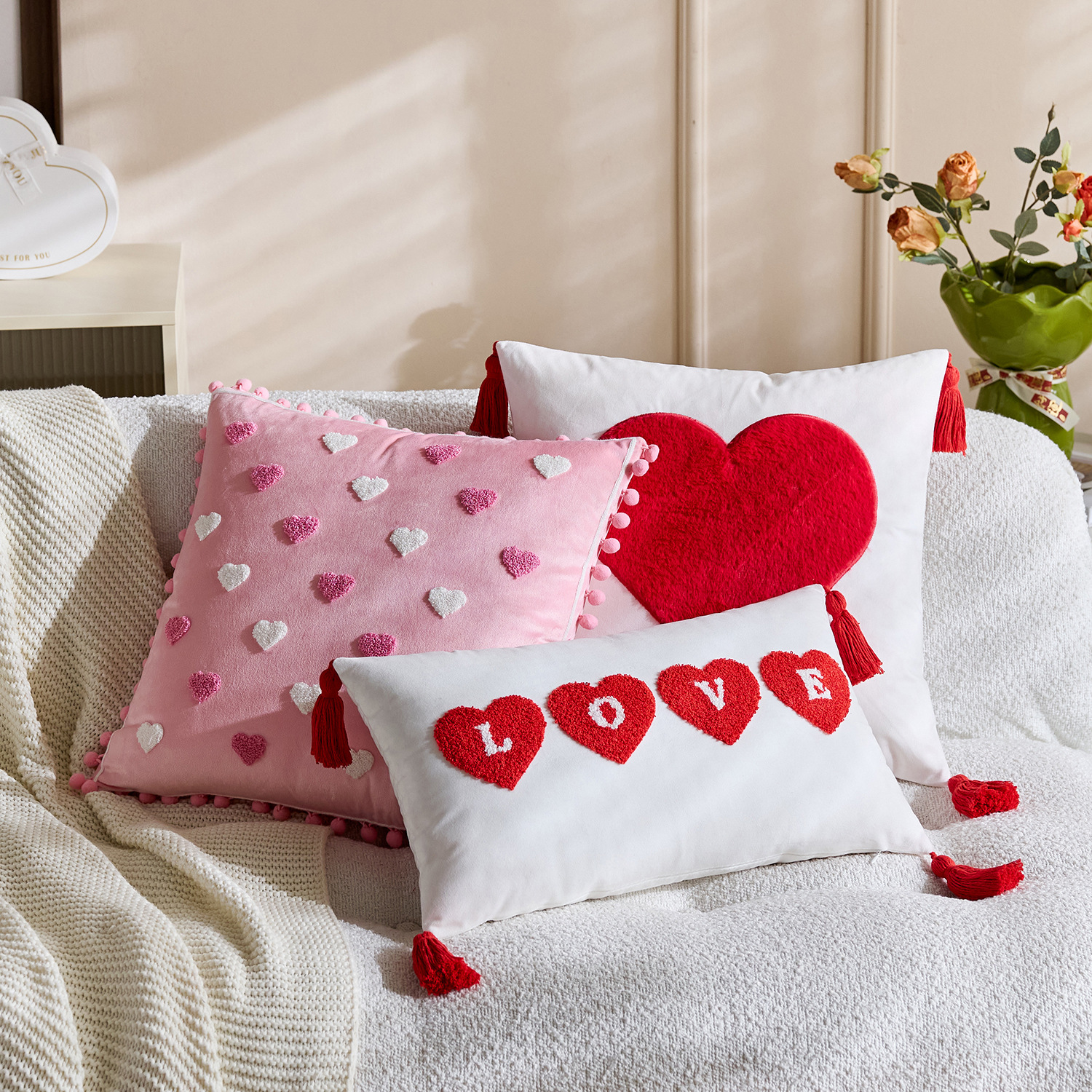 color: tassel white love 45*45, tassel red love 45