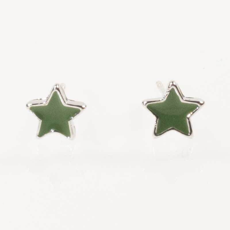 sterling silver needle all-match and cute lucky little star stud earrings mini pentagram green dripping oil simple earrings