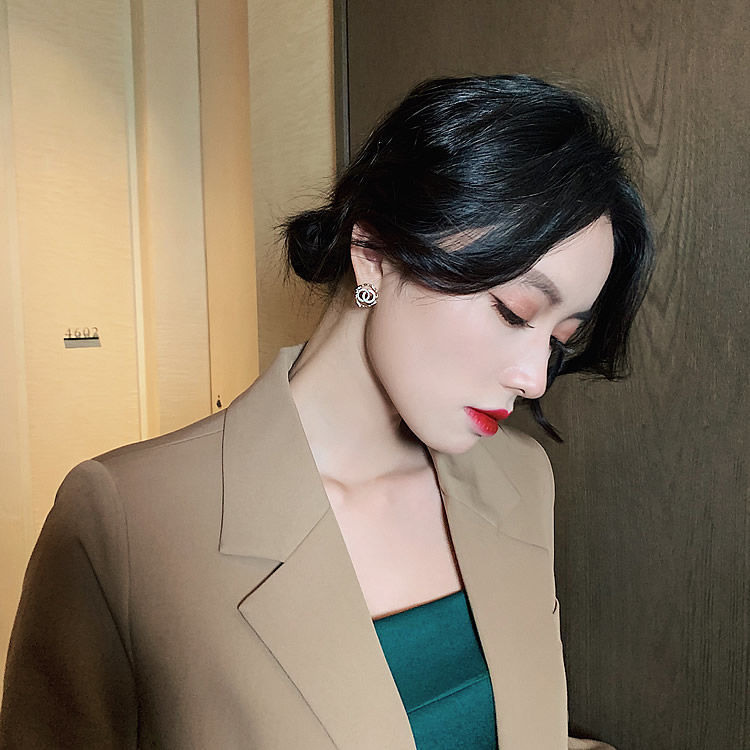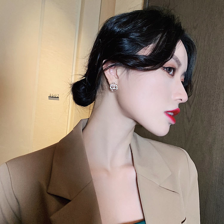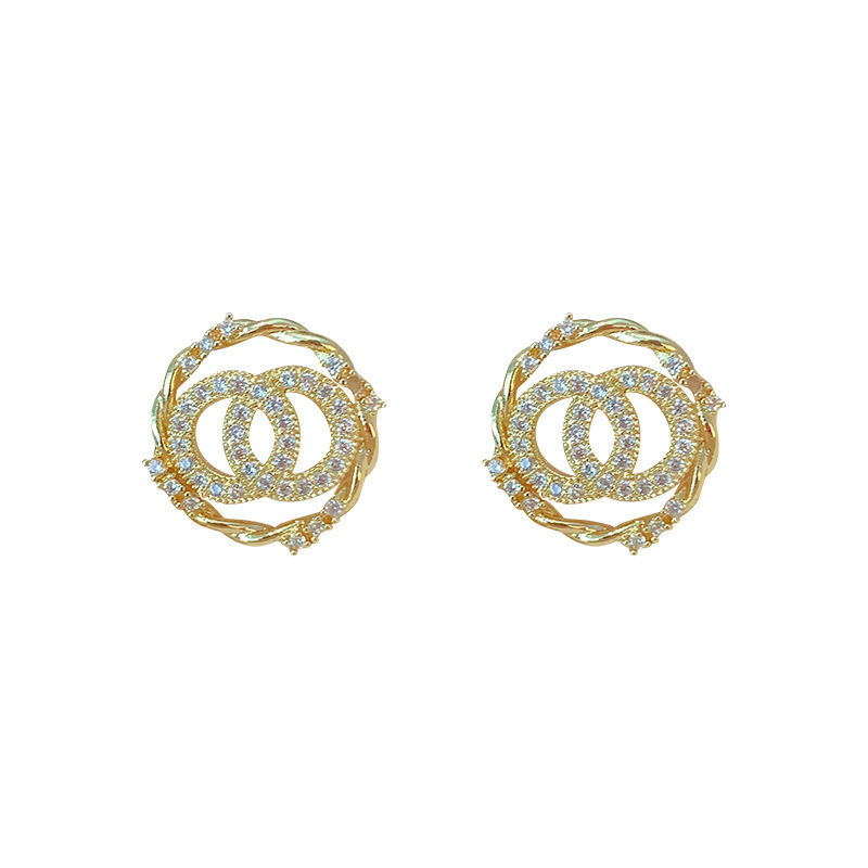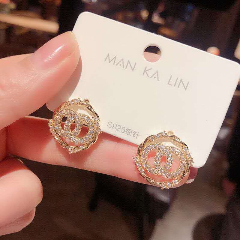 sterling silver needle double circle diamond niche simple and stylish earrings korean personality all-match internet celebrity same style trending earrings