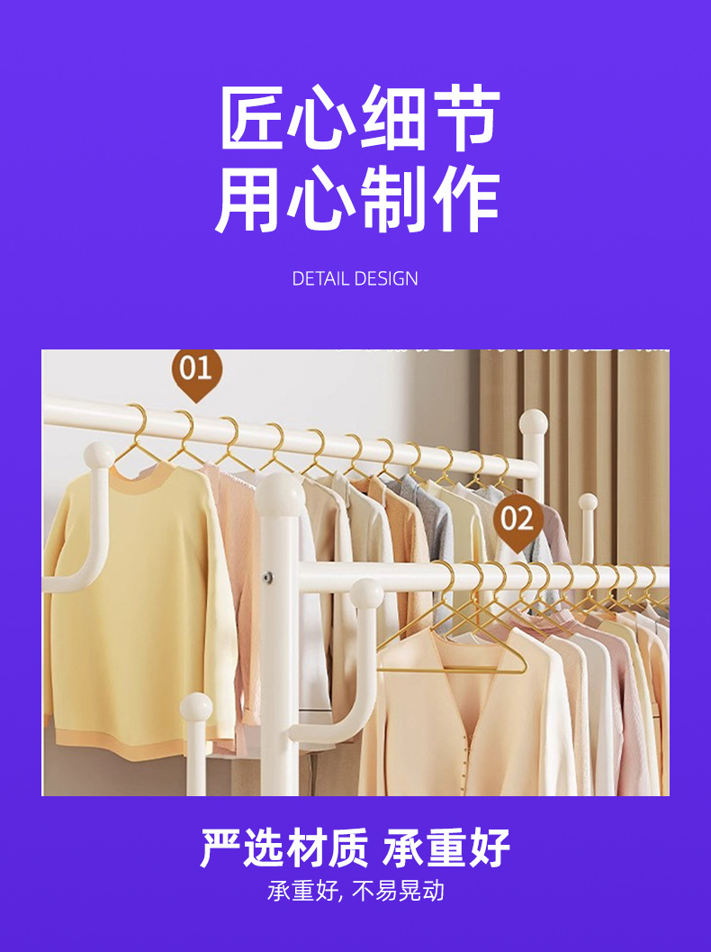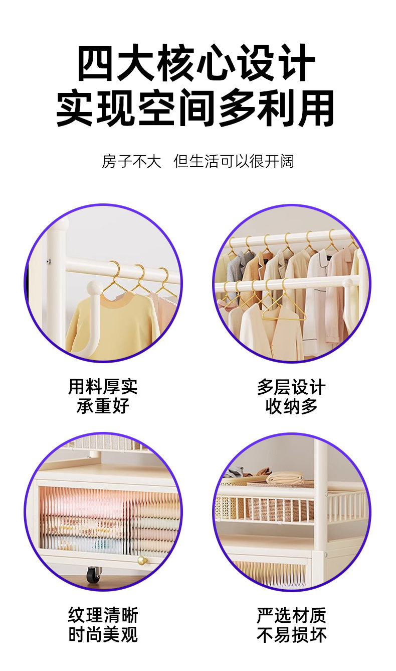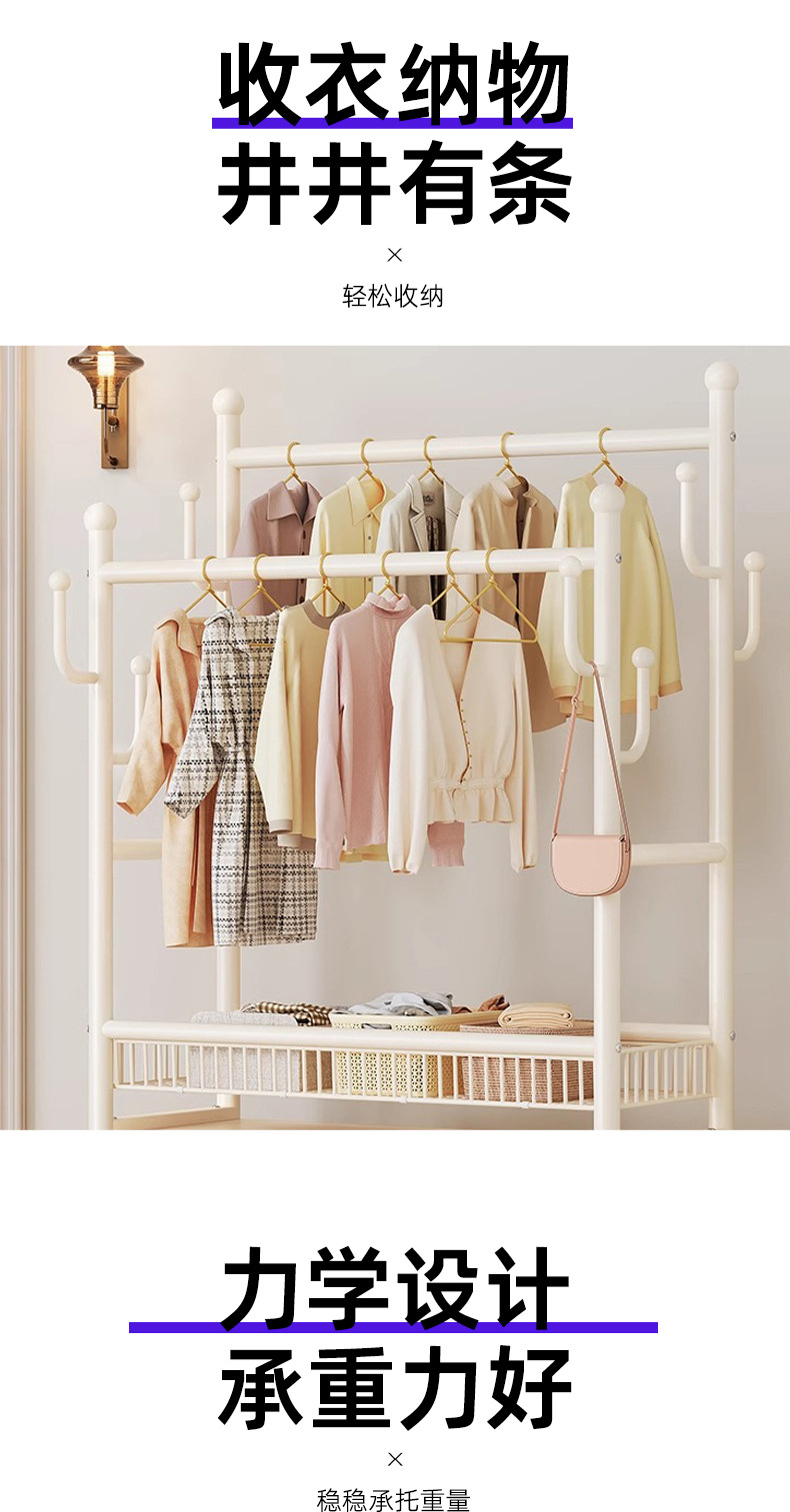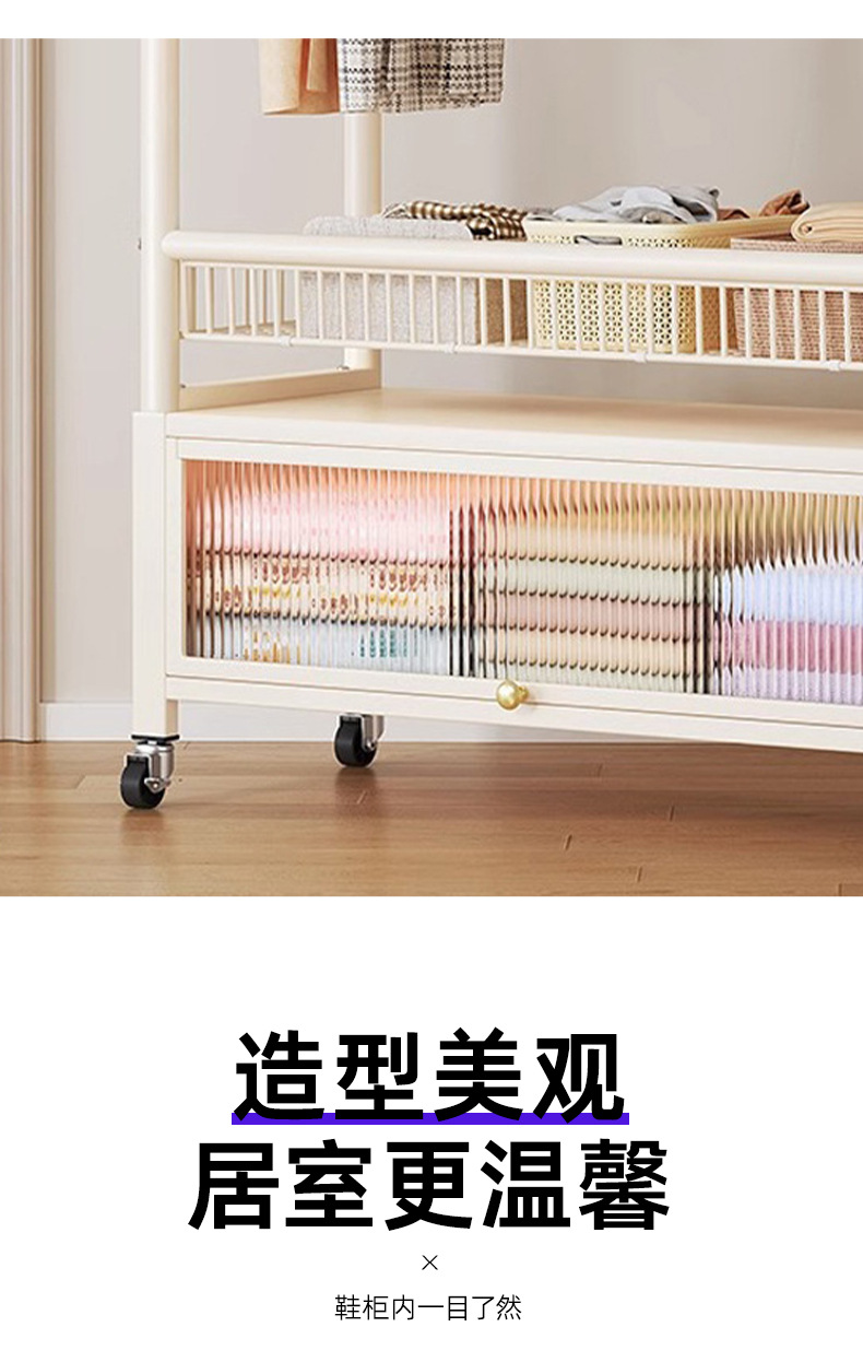 cream white 120cm double-row hanging rod +8 hooks [storage mesh basket + dustproof storage cabinet] free wheels + base feet