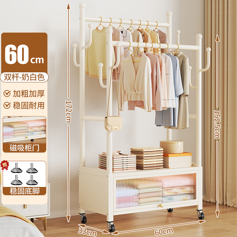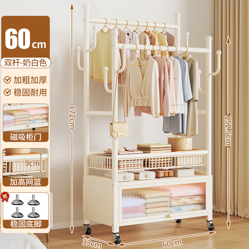 cream white 60cm double-row hanging rod +8 hooks [storage mesh basket + dustproof storage cabinet] free wheels + bottom feet