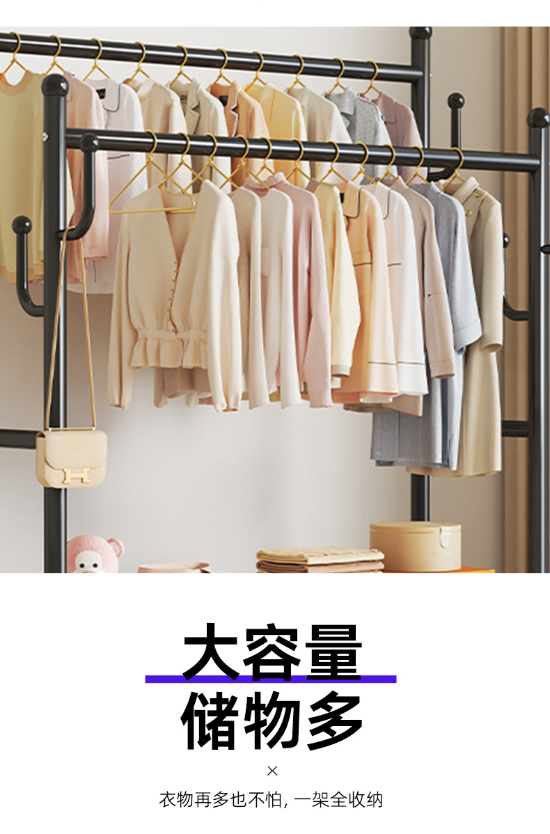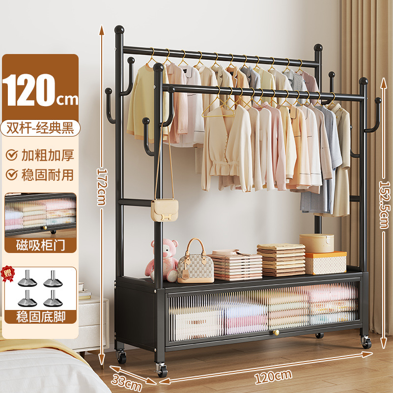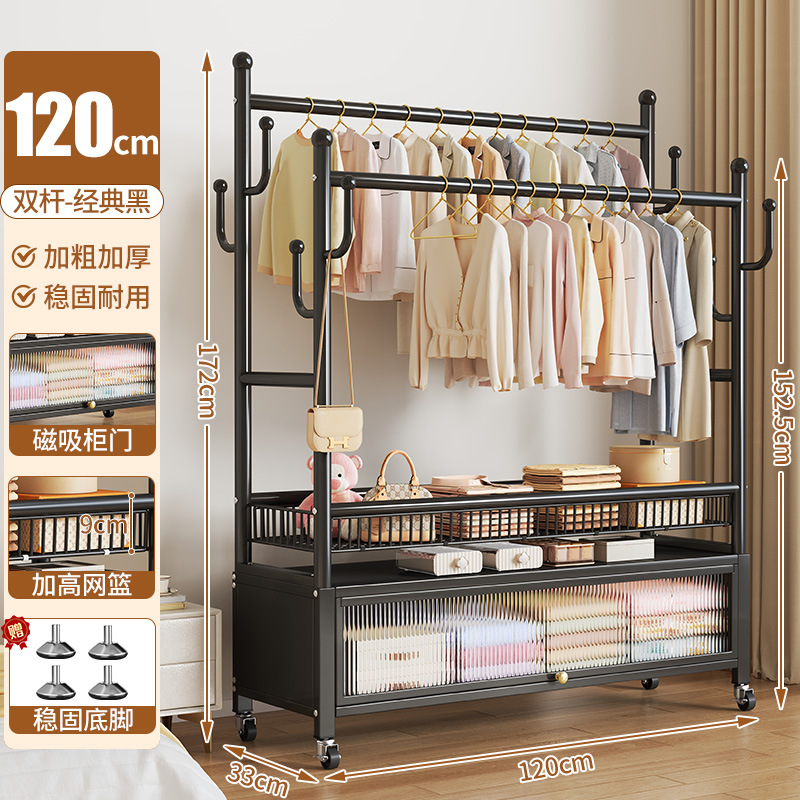 high-end black 120cm double-row hanging rod +8 hooks [storage mesh basket + dust-proof storage cabinet] free wheels + base feet