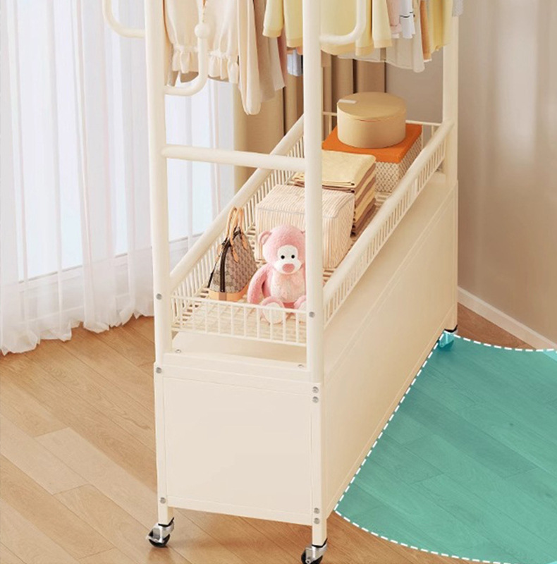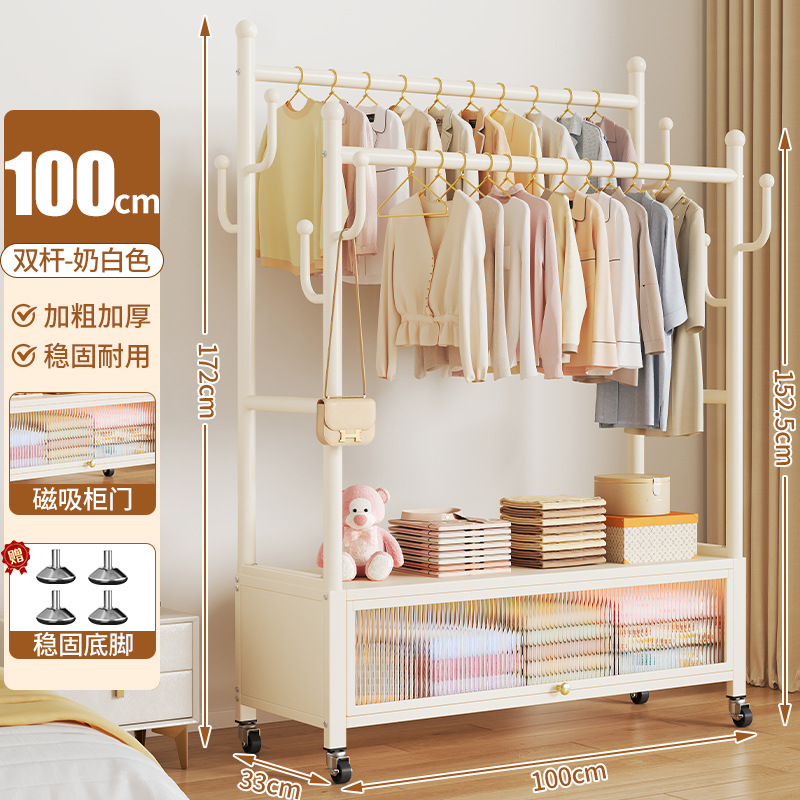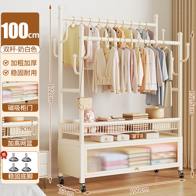 cream white 100cm double-row hanging rod +8 hooks [storage mesh basket + dustproof storage cabinet] free wheels + base feet