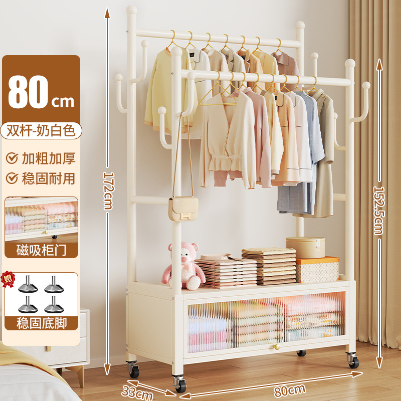 cream white 80cm double-row hanging rod +8 hooks [dustproof storage cabinet] free wheels + bases