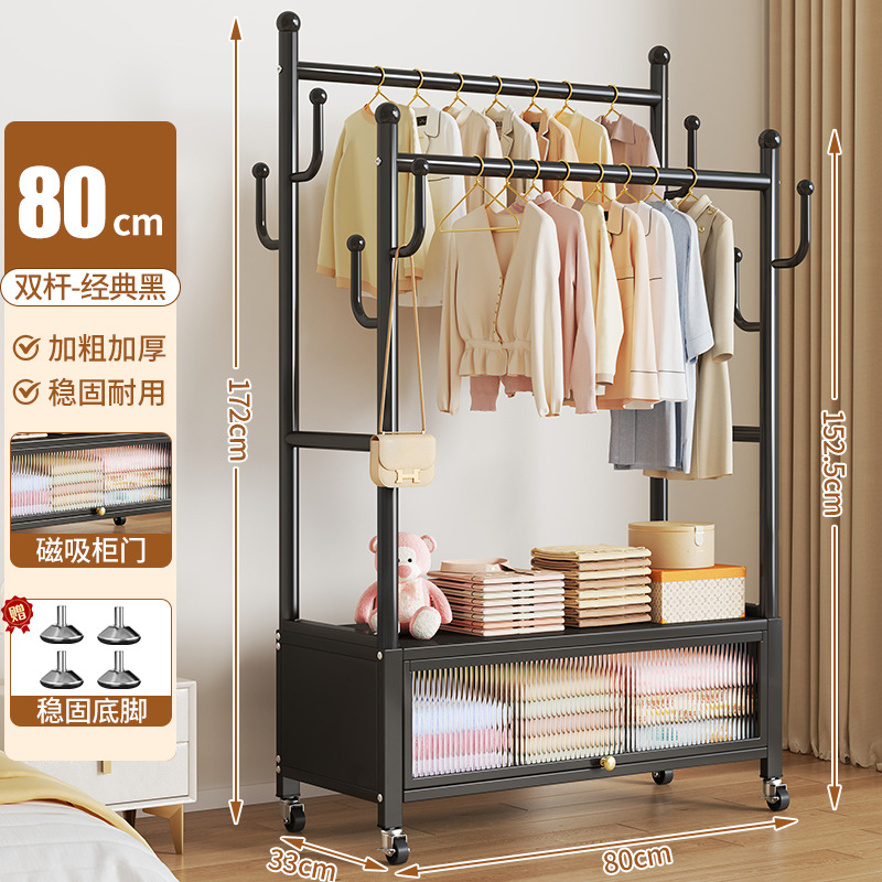 high-end black 80cm double-row hanging rod +8 hooks [dustproof storage cabinet] free wheels + bases