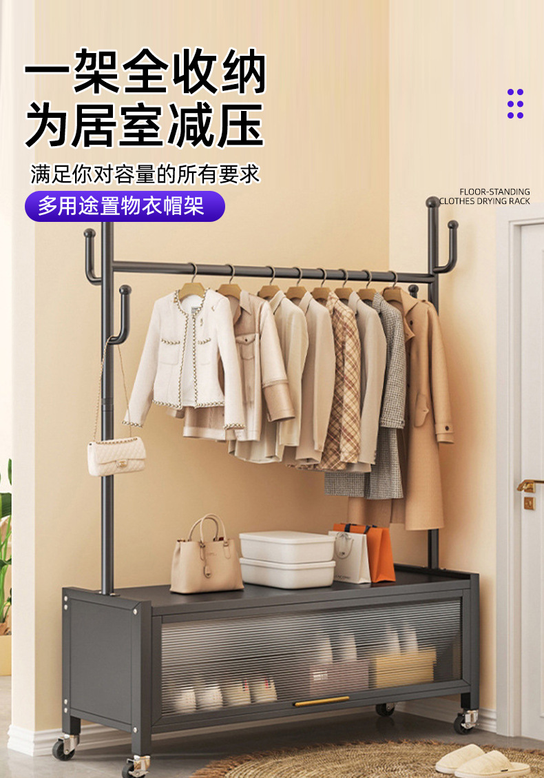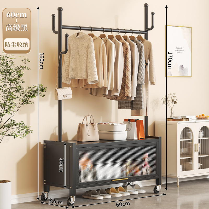 60cm premium black + storage cabinet clothes rack-with universal wheels
