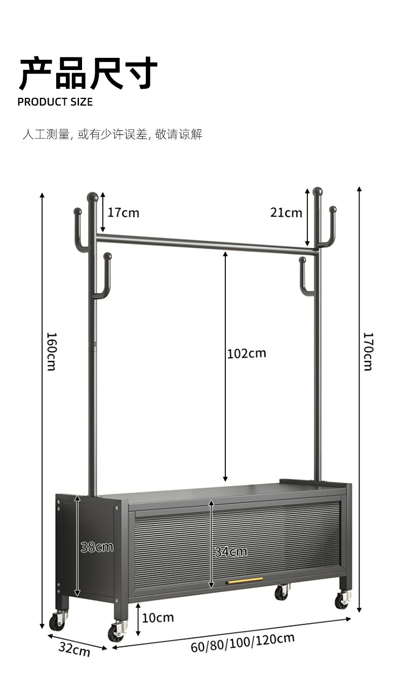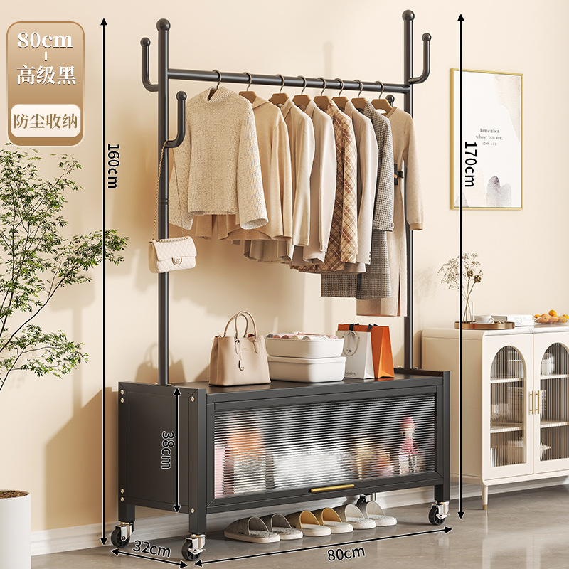80cm premium black + storage cabinet clothes rack-with universal wheels