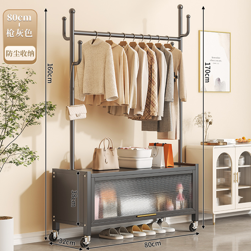 80cm gun gray + storage cabinet clothes rack-with universal wheels