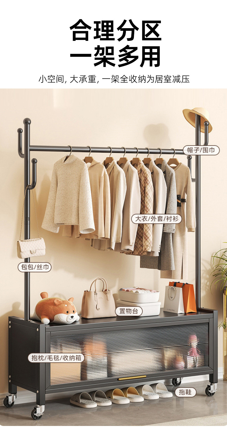 80cm cream white + storage cabinet clothes rack-with universal wheels