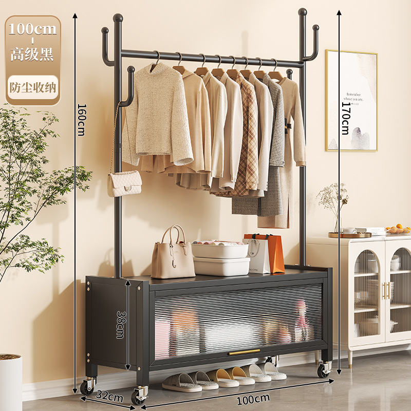 100cm premium black + storage cabinet clothes rack-with universal wheels