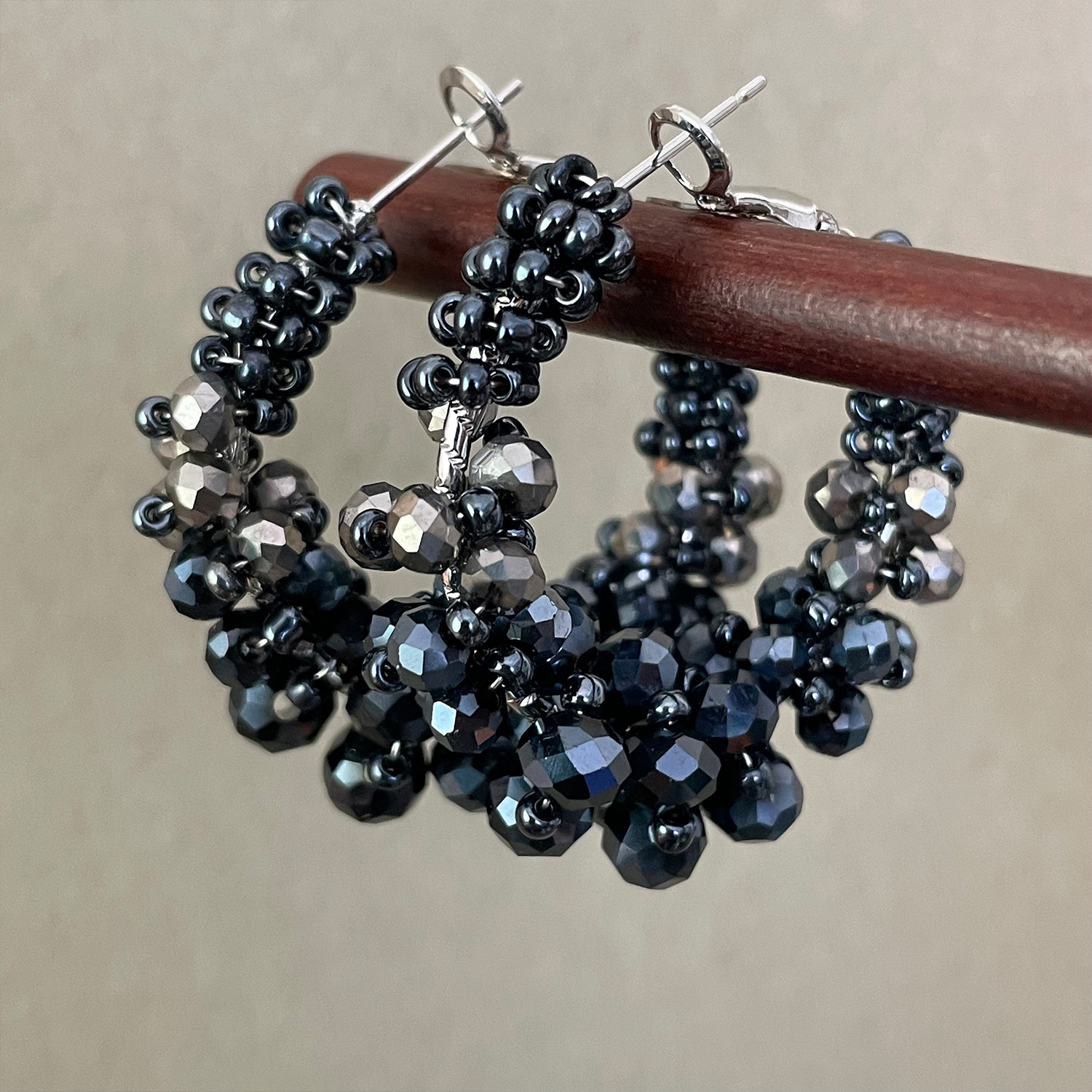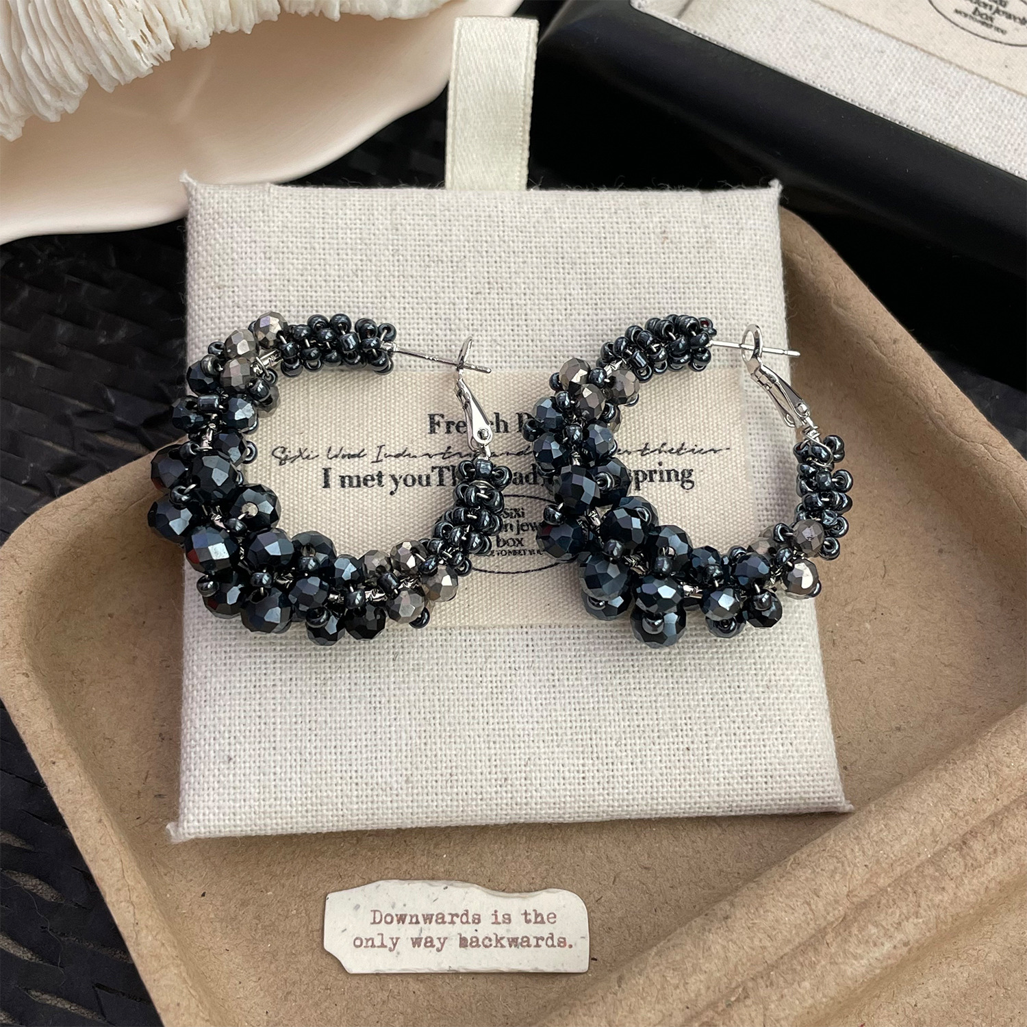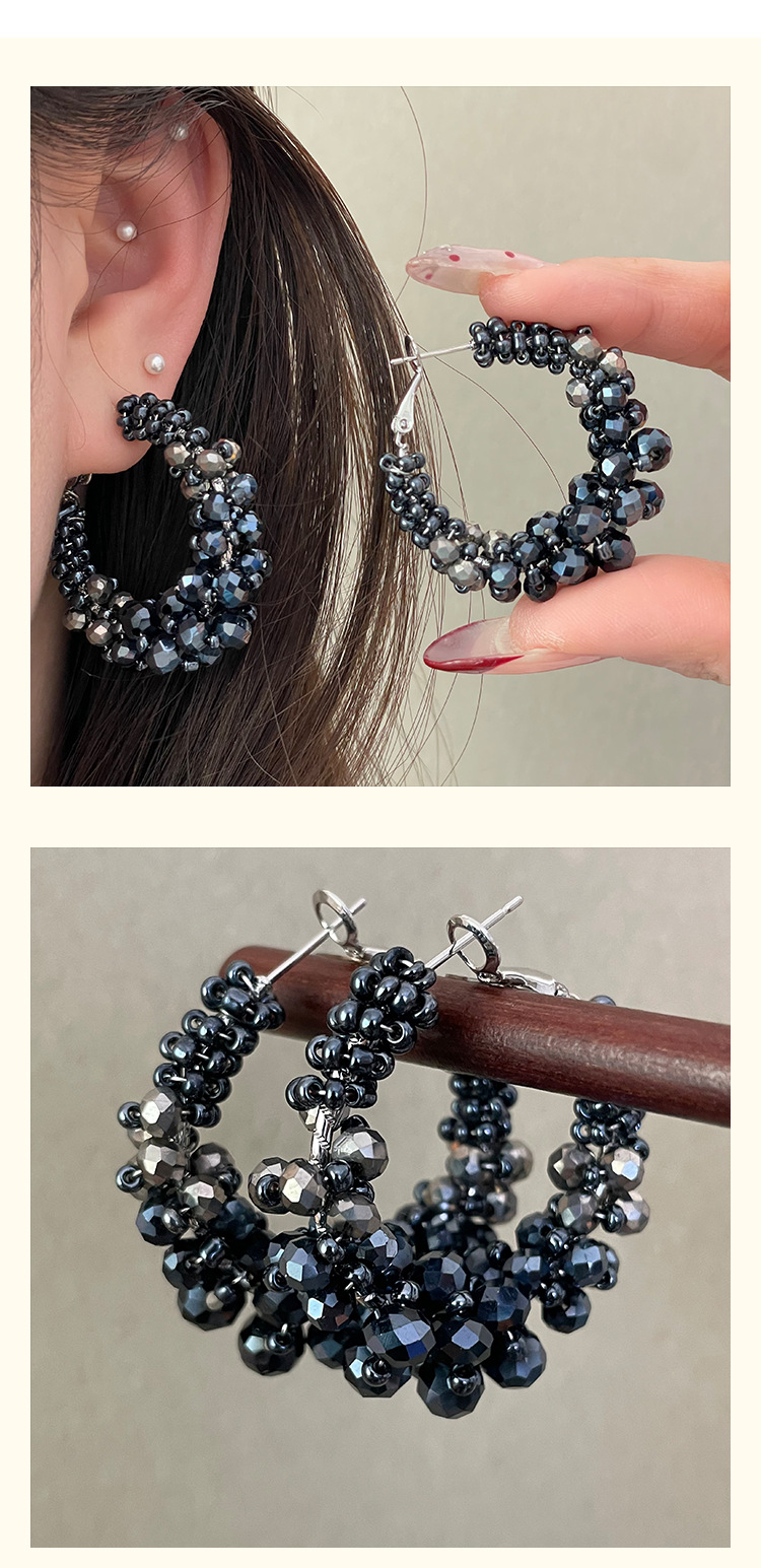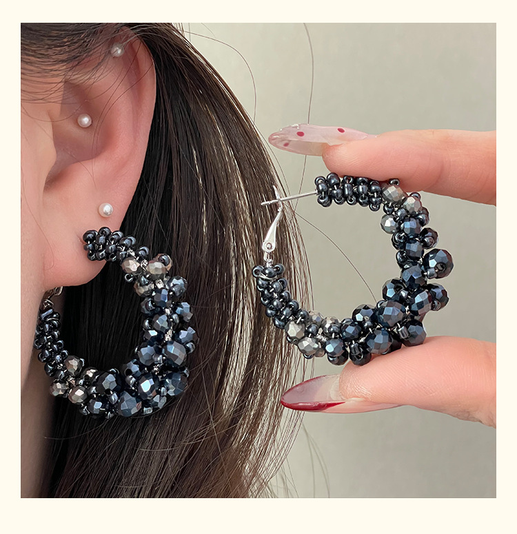 4219 black crystal winding ear clip