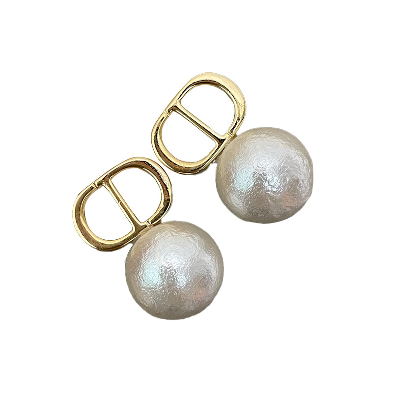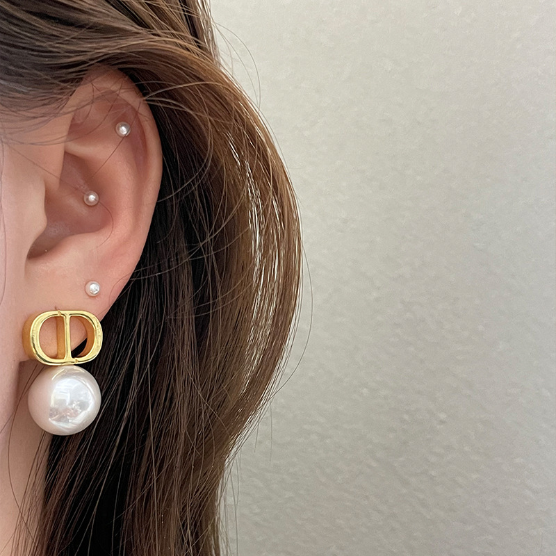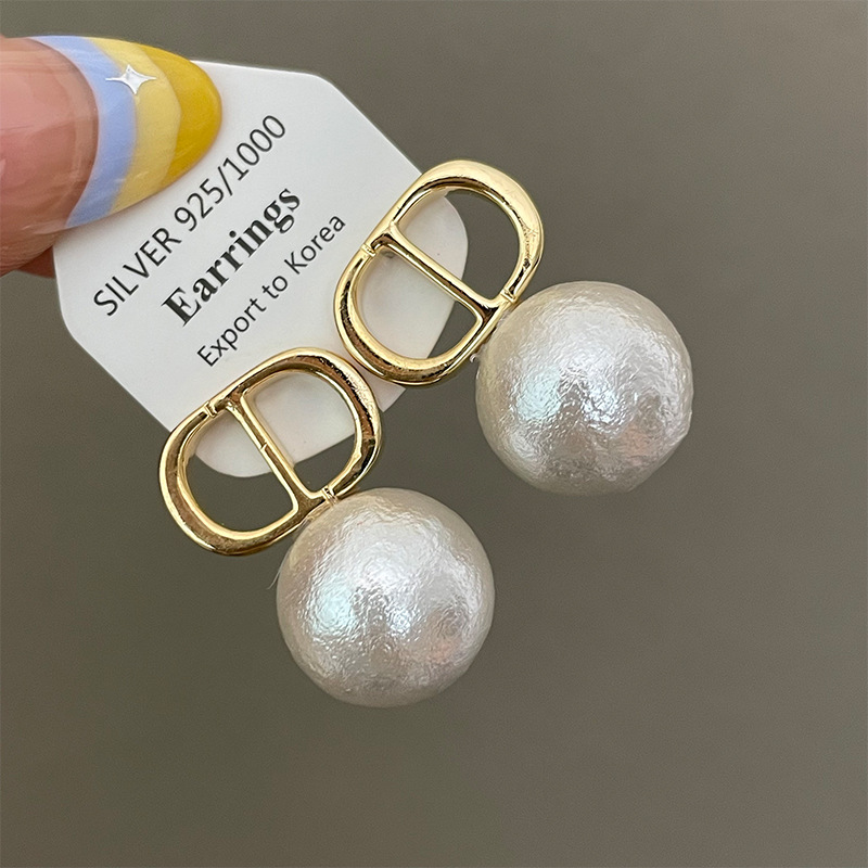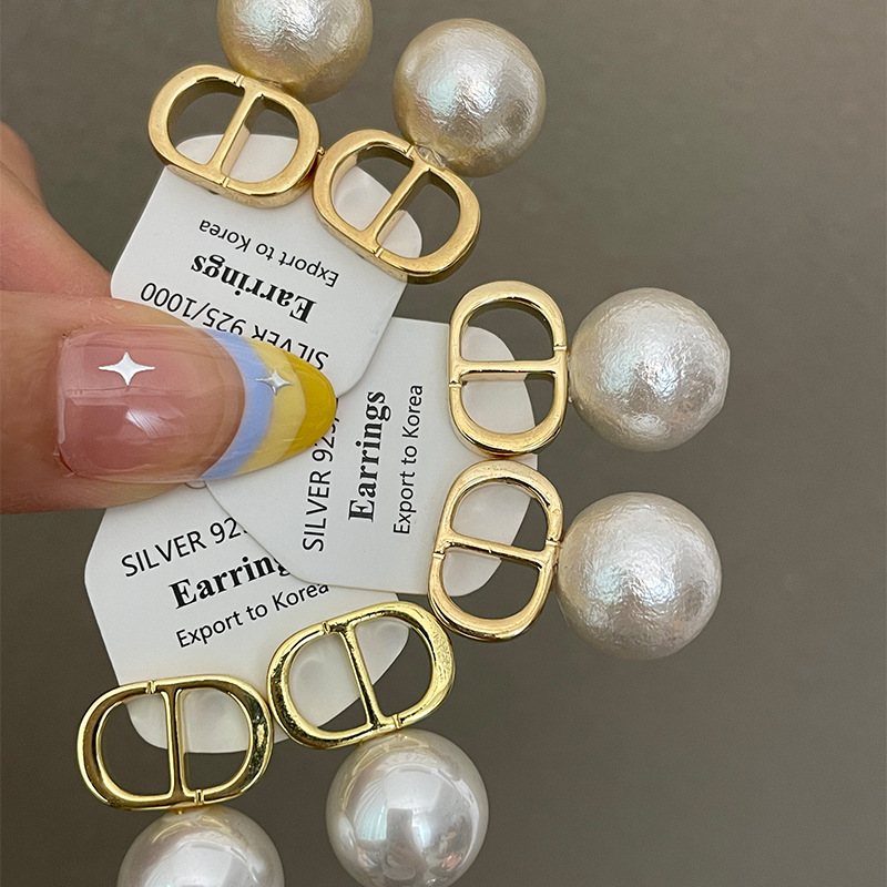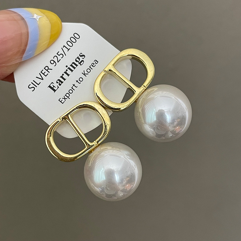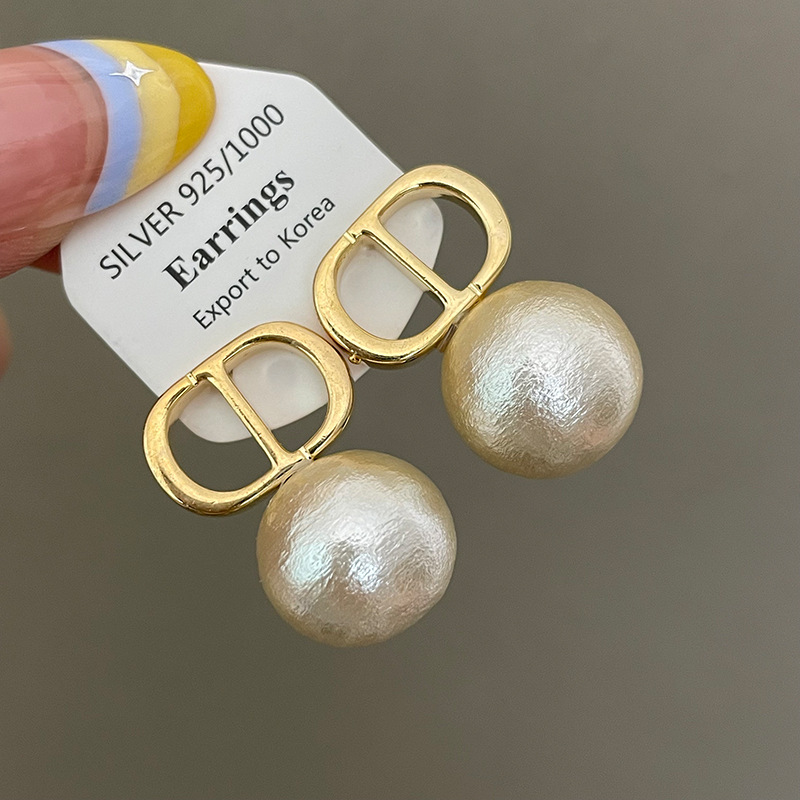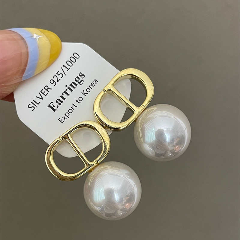 1763 gold white shell pearls cd stud earrings 925 silver needle