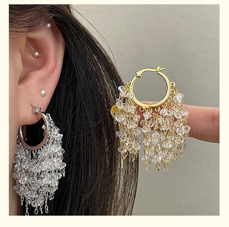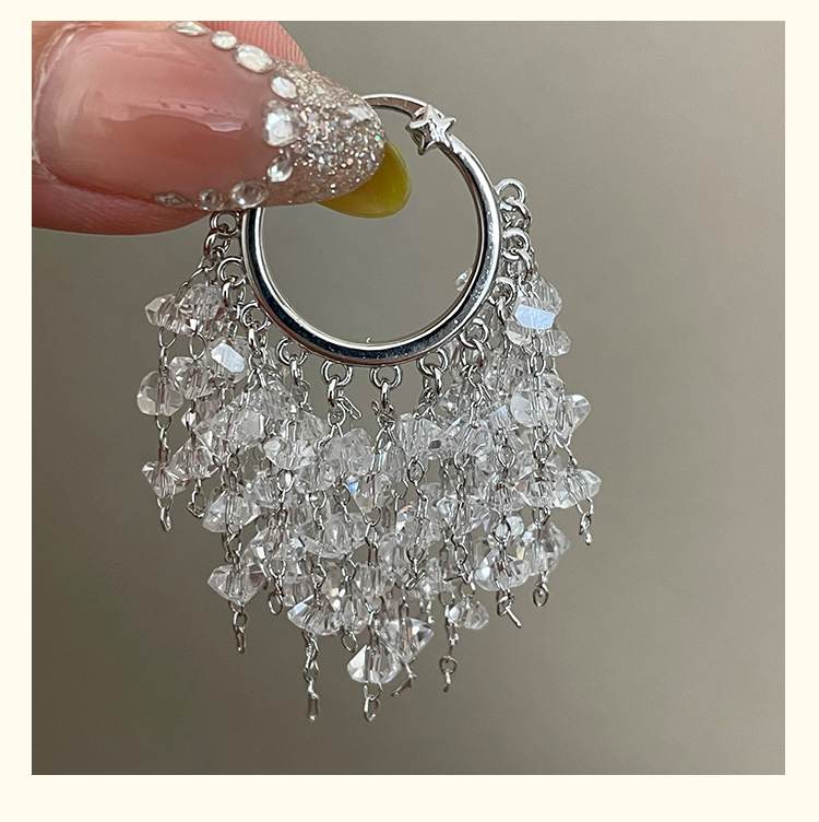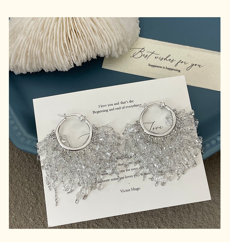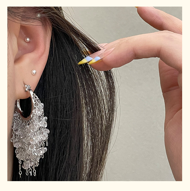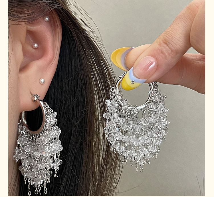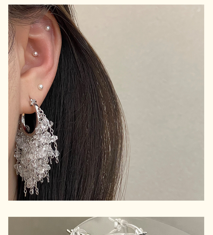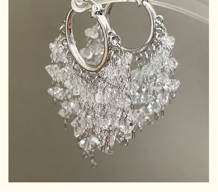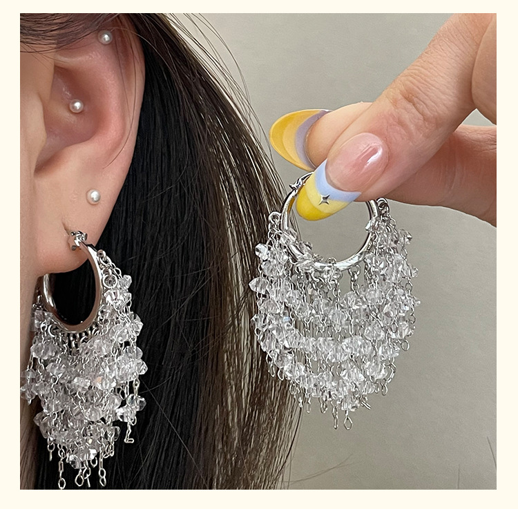 3929 silver crystal tassel ear clip