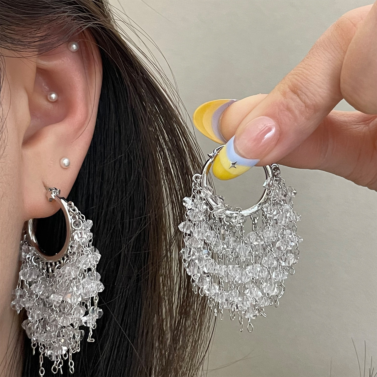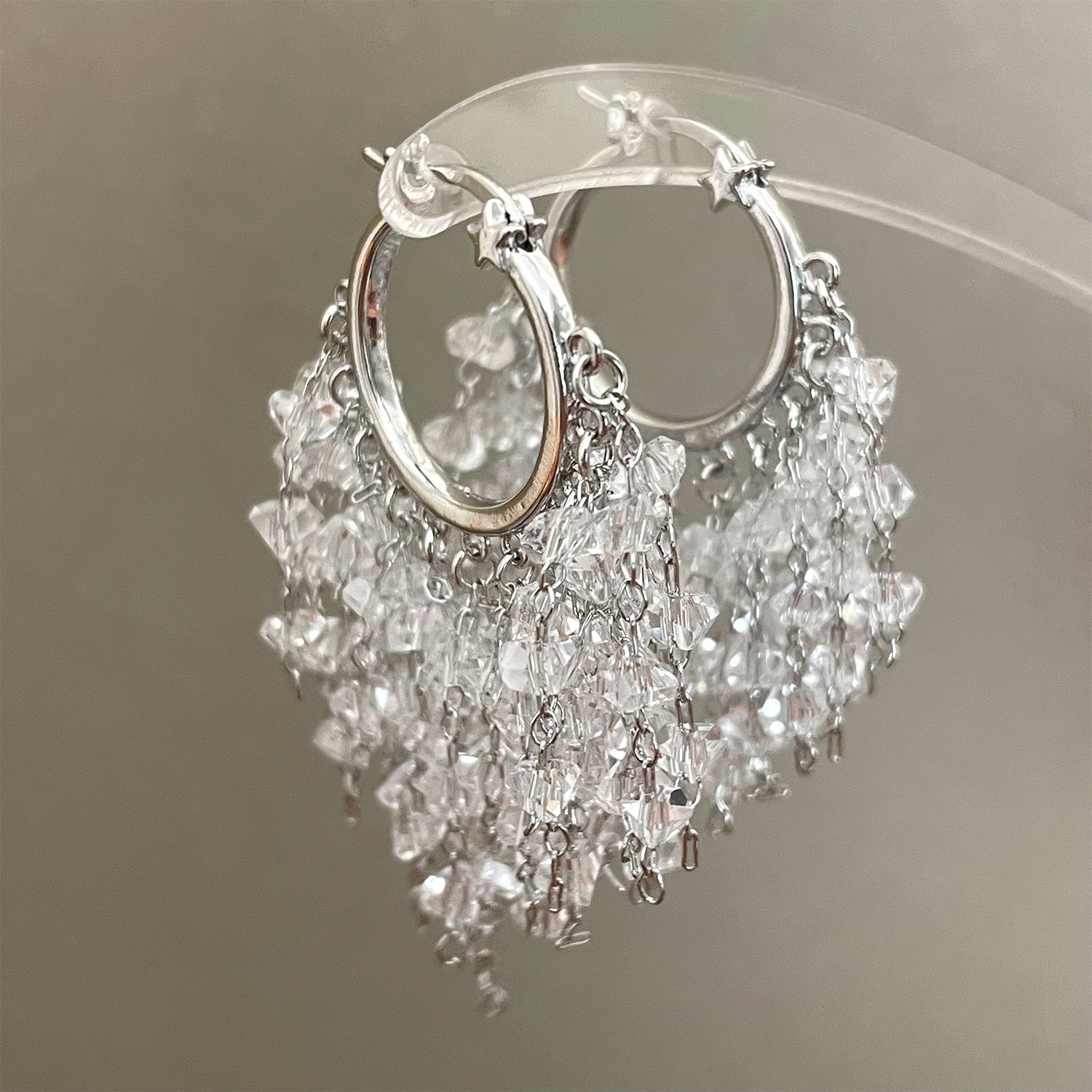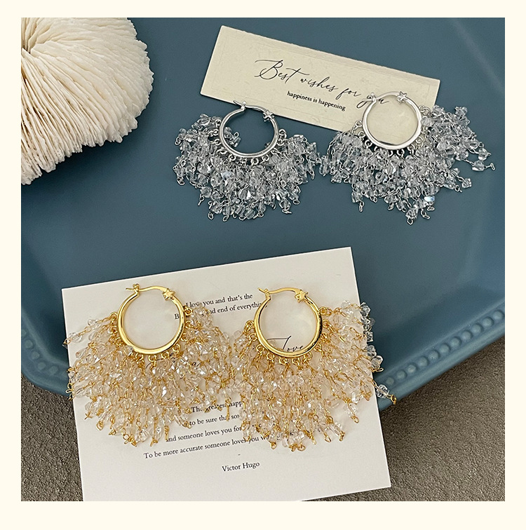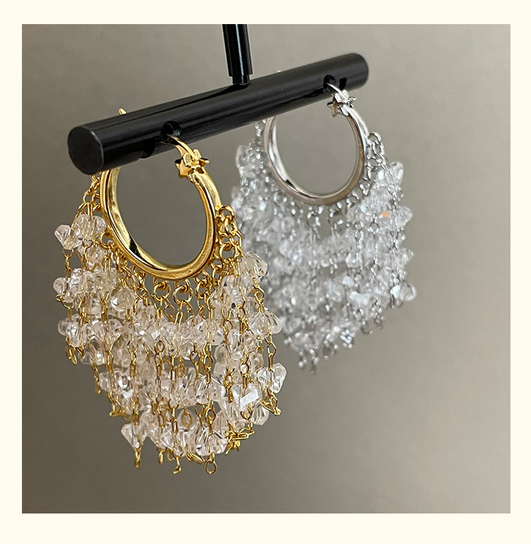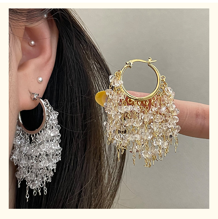 3929 silver crystal tassel ear clip