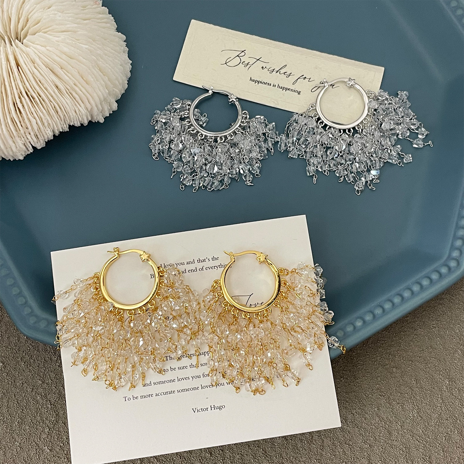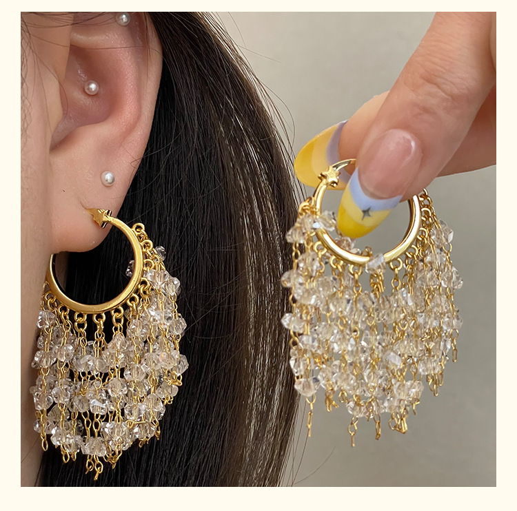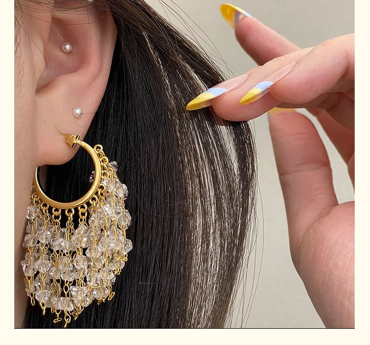 3929 gold crystal tassel ear clip
