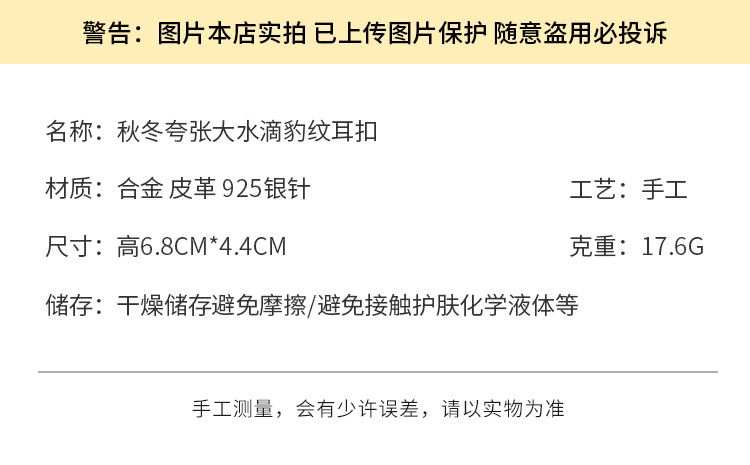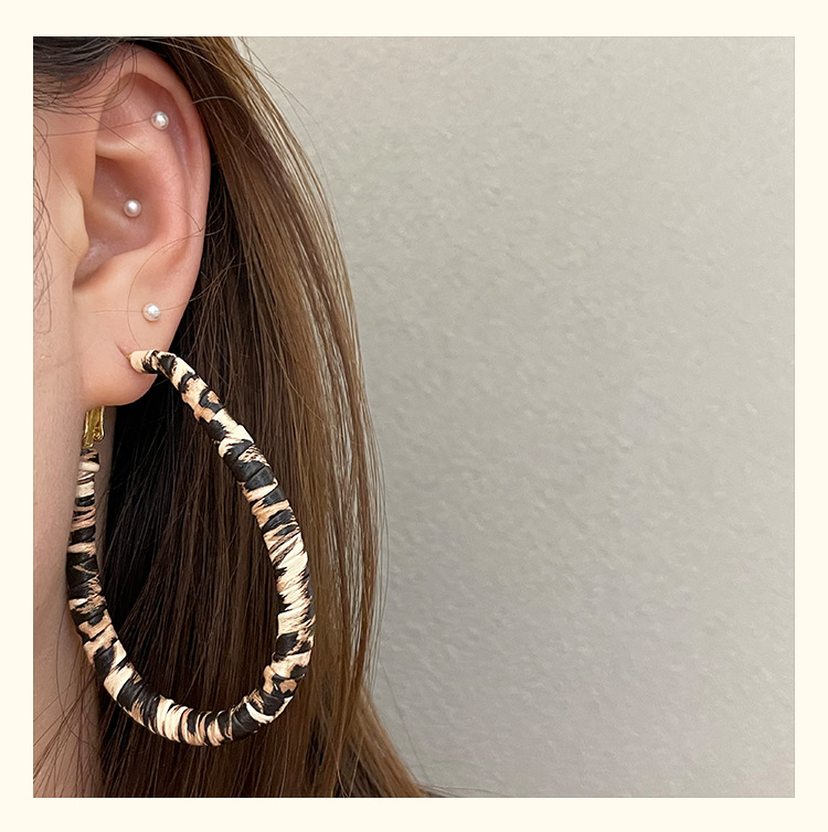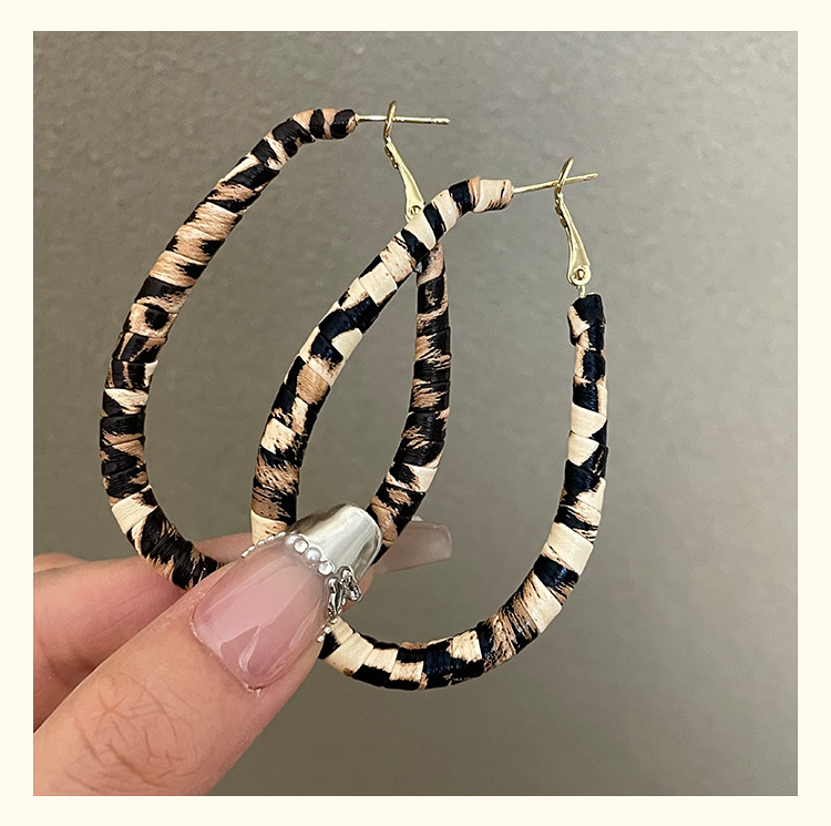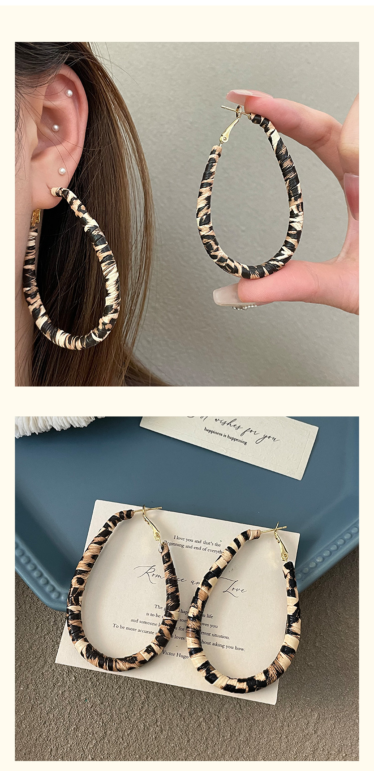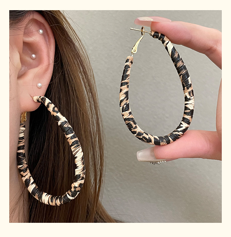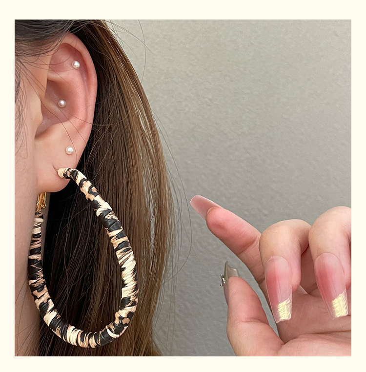 3722 autumn and winter exaggerated big water drop leopard print ear clip