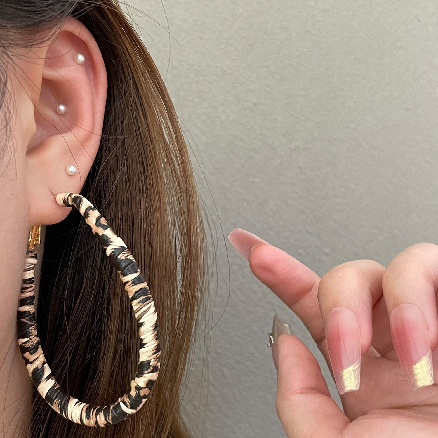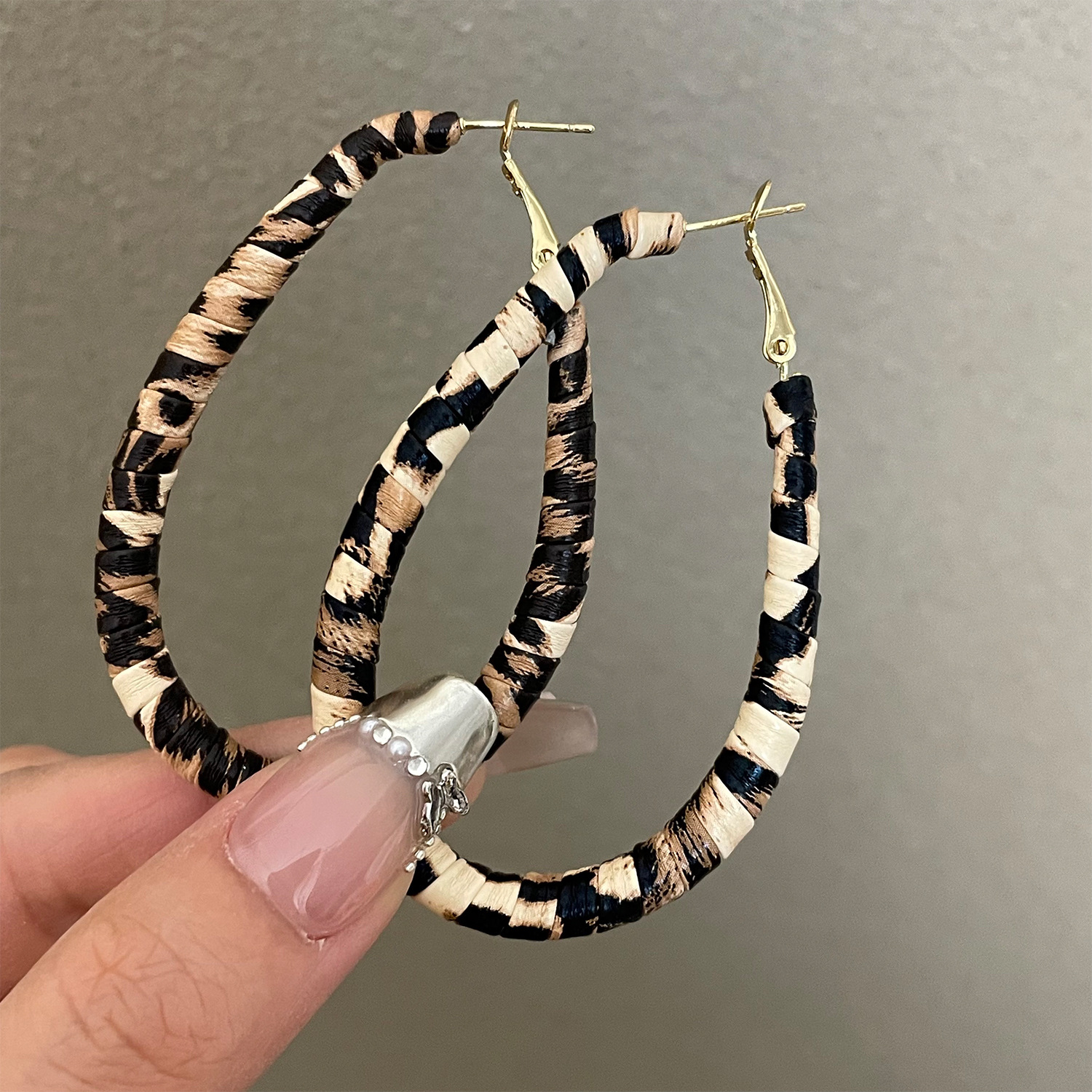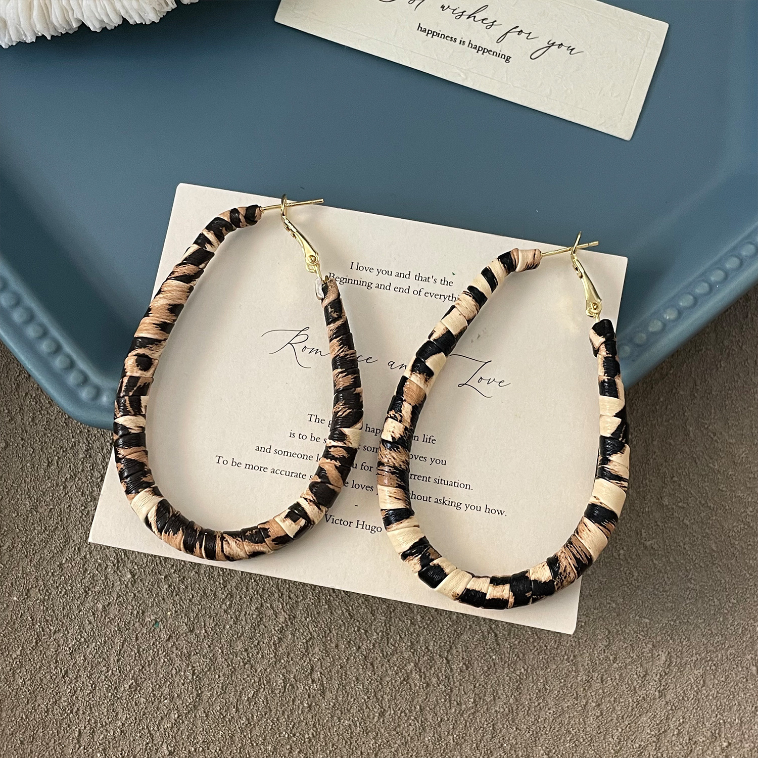 3722 autumn and winter exaggerated big water drop leopard print ear clip