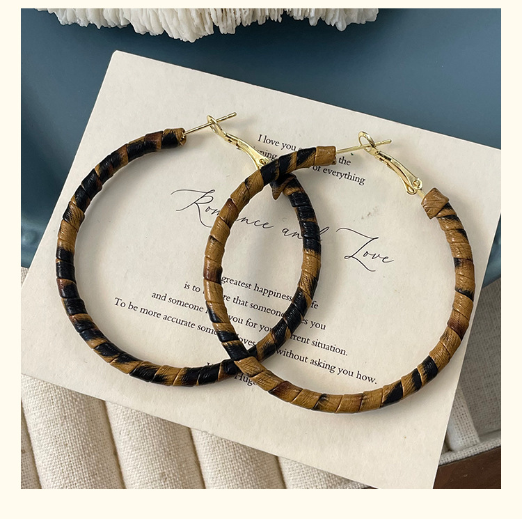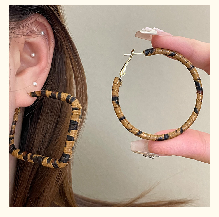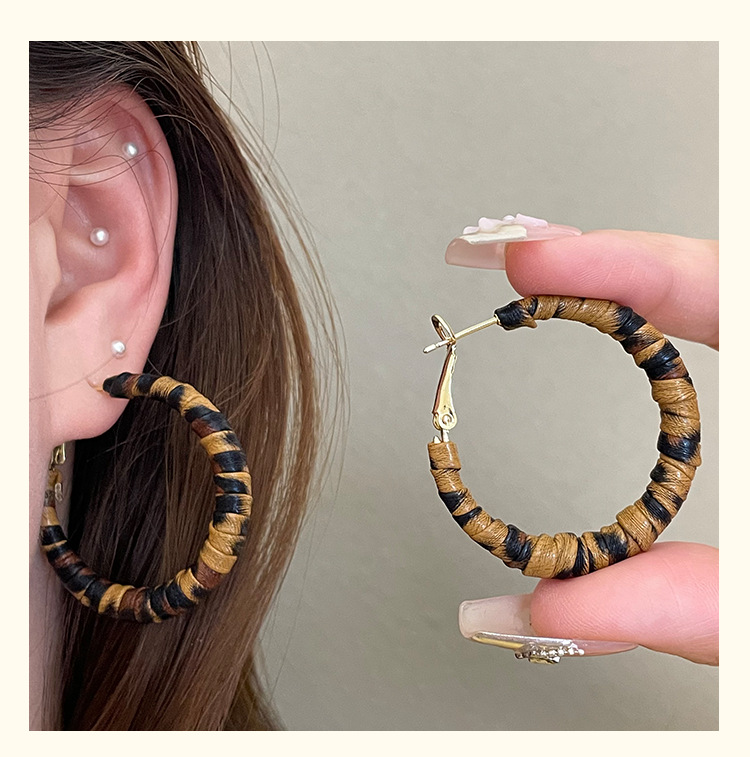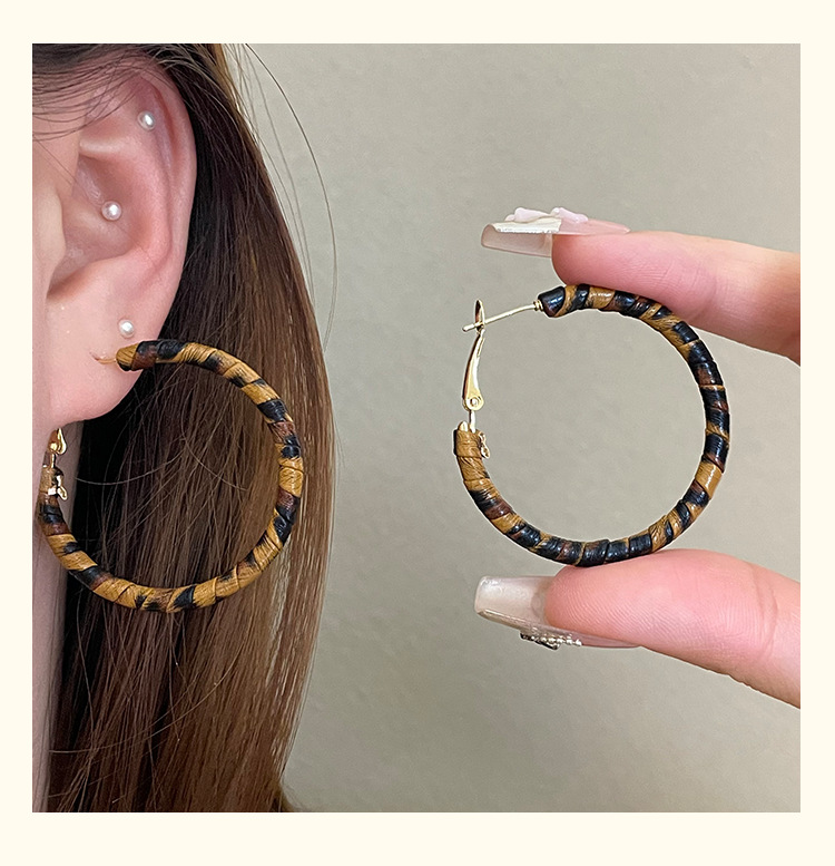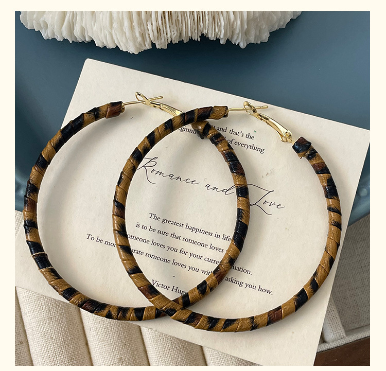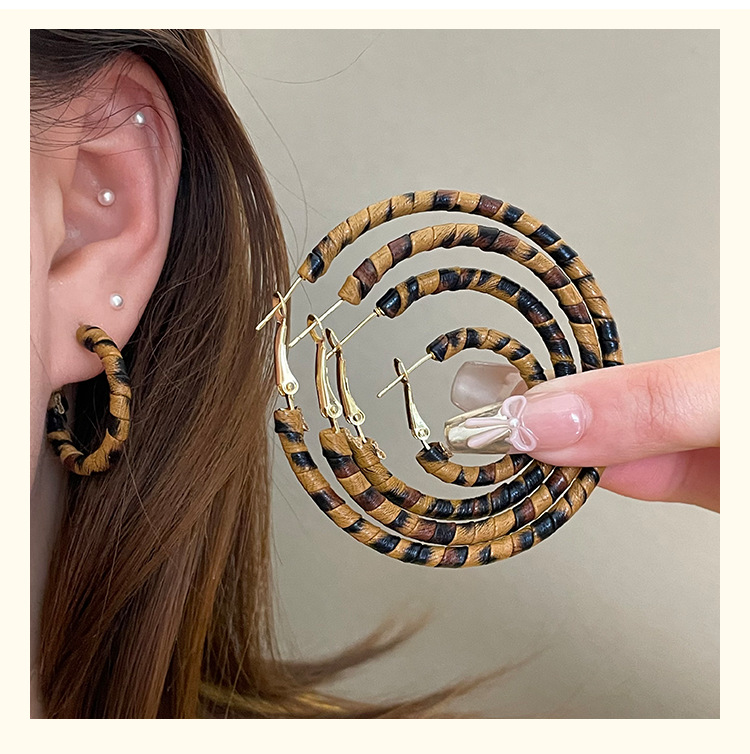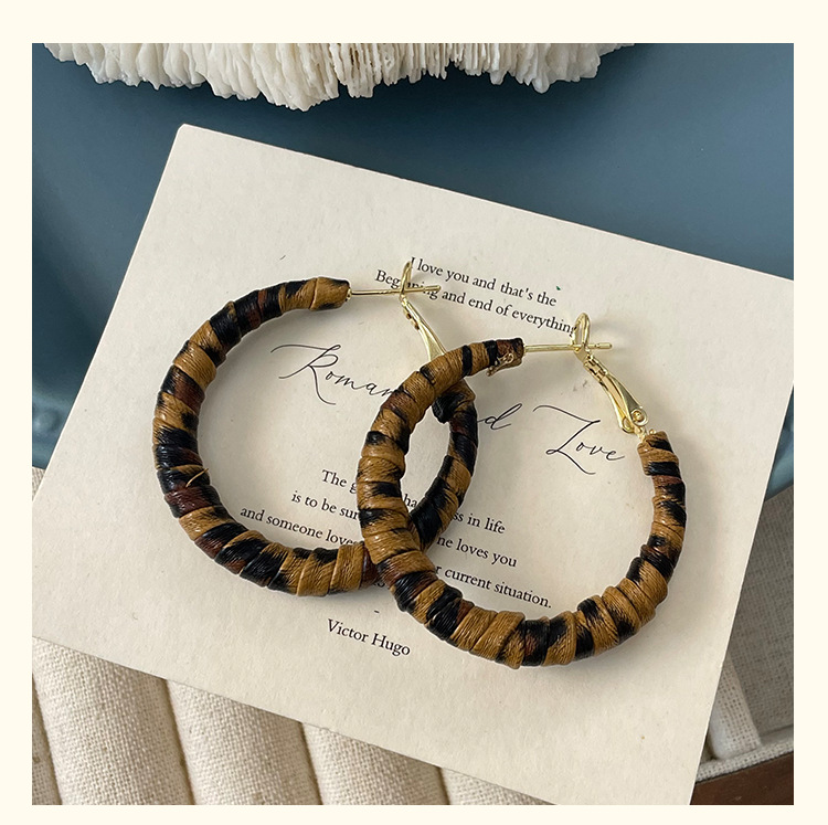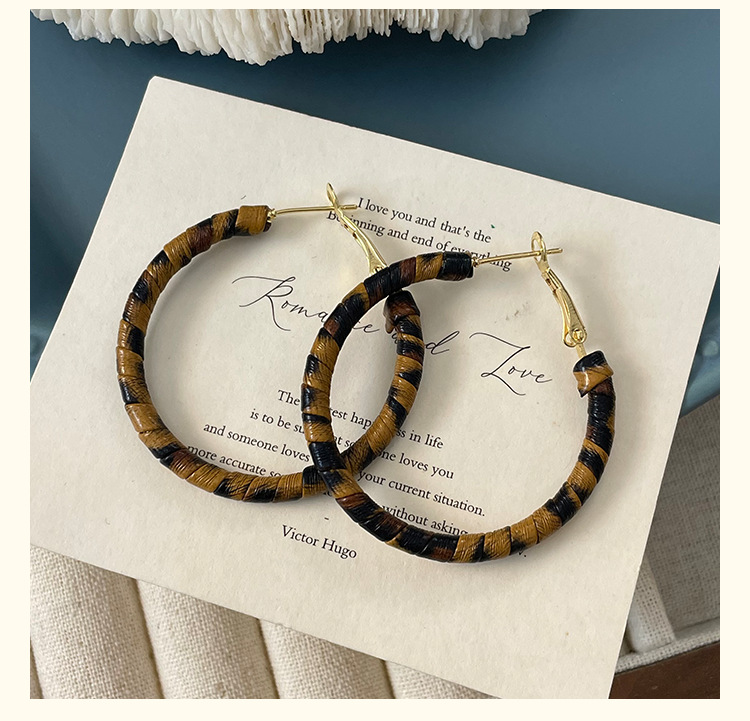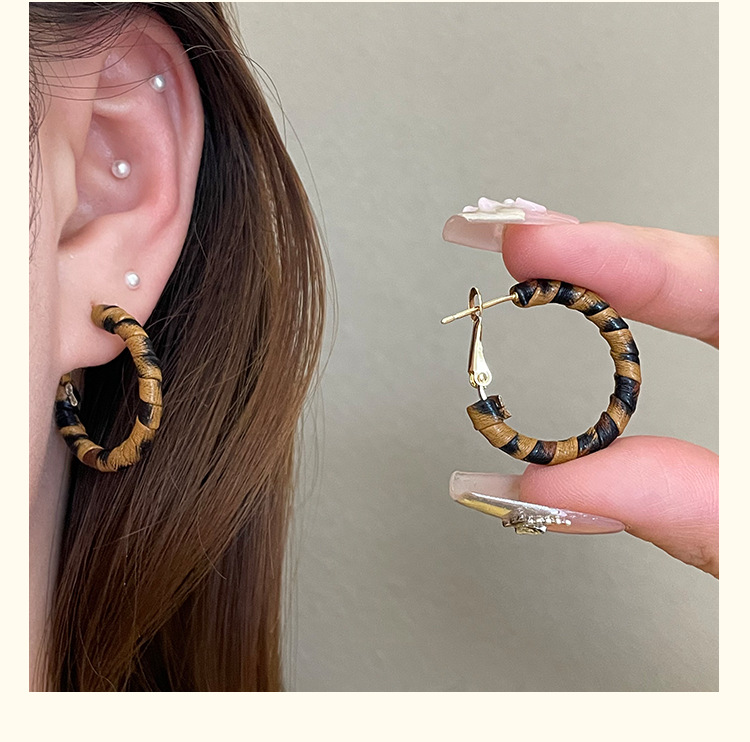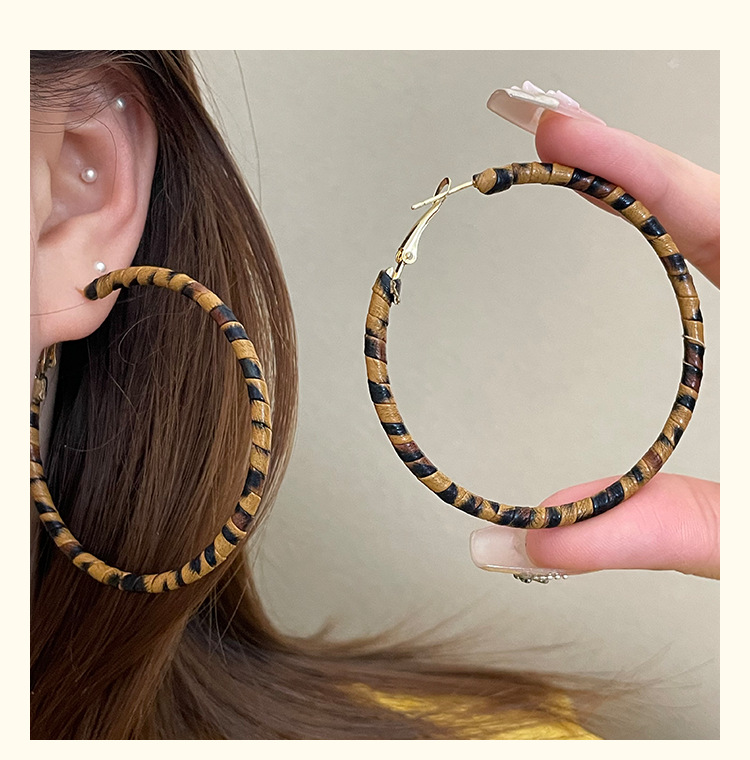 3758 fine circle 5cm classic leopard pattern circle 925 silver needle ear clip