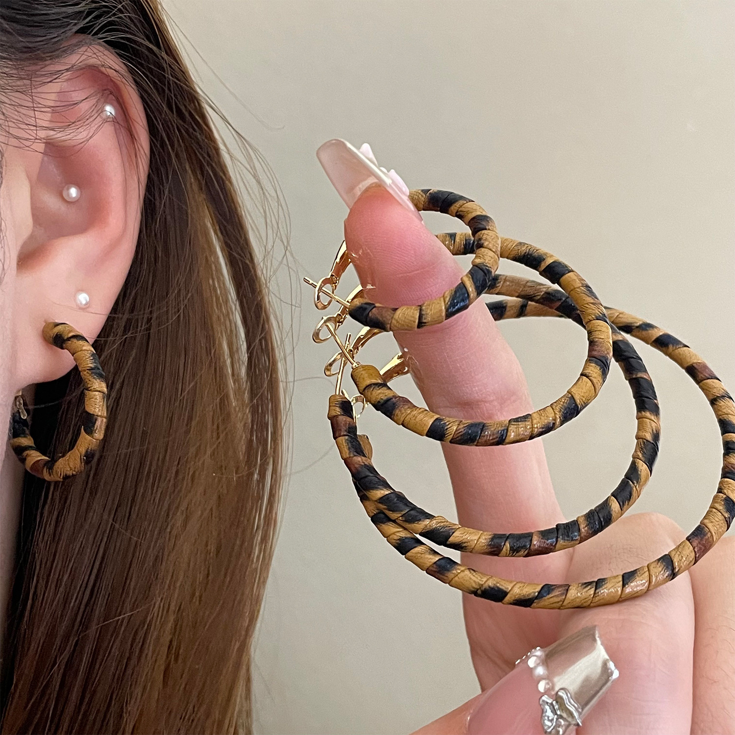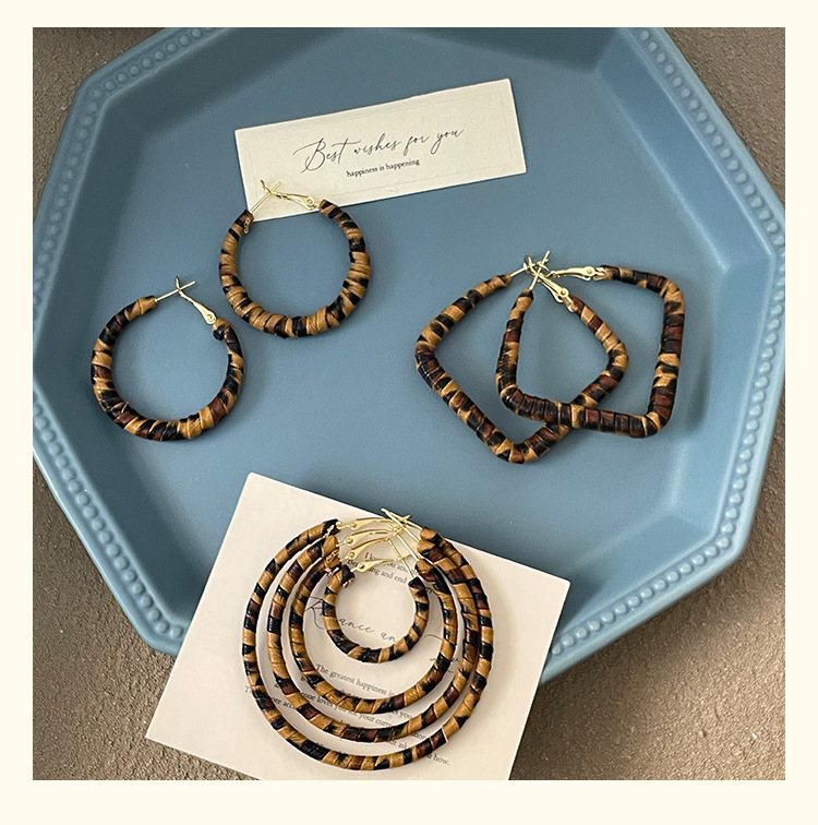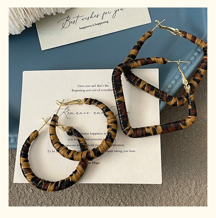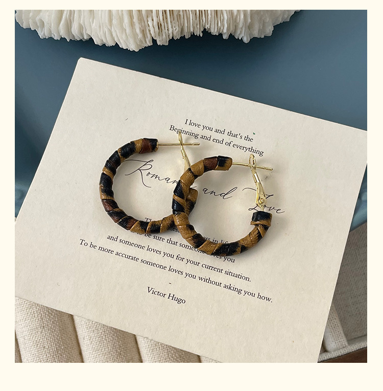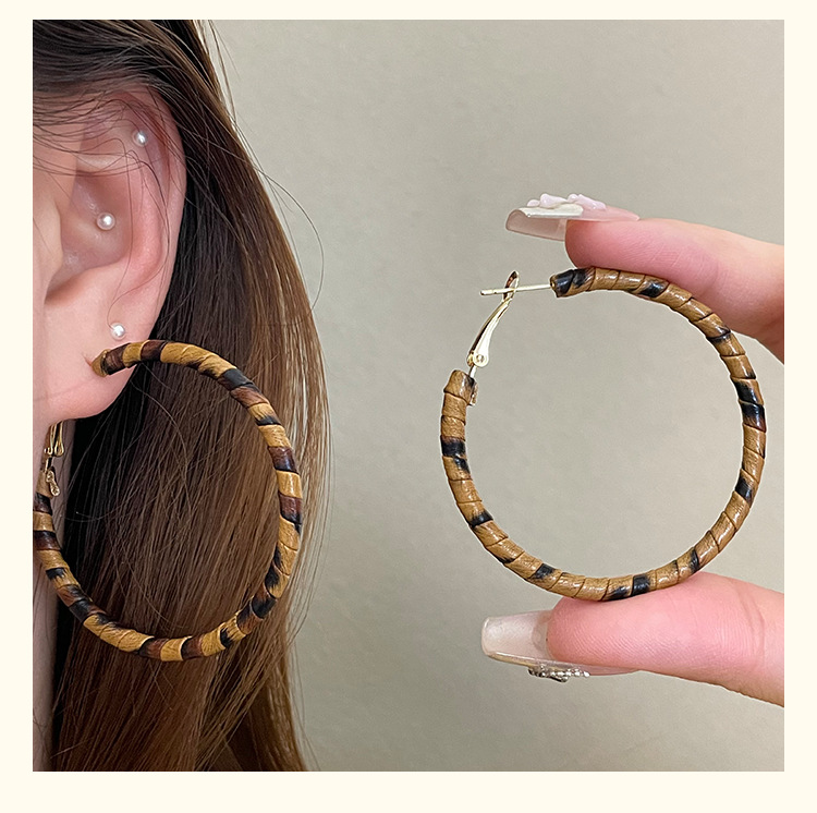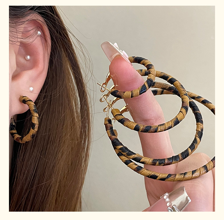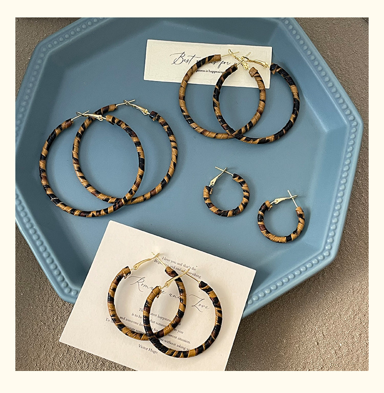 3758 fine circle 5cm classic leopard pattern circle 925 silver needle ear clip
