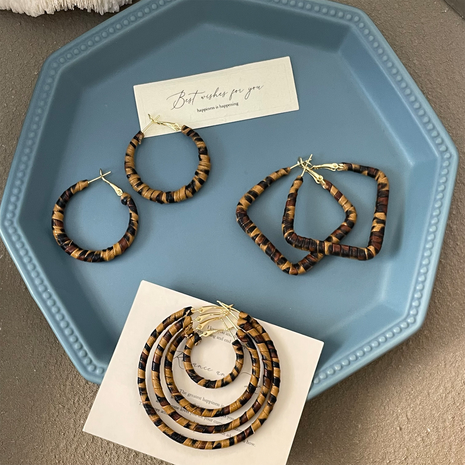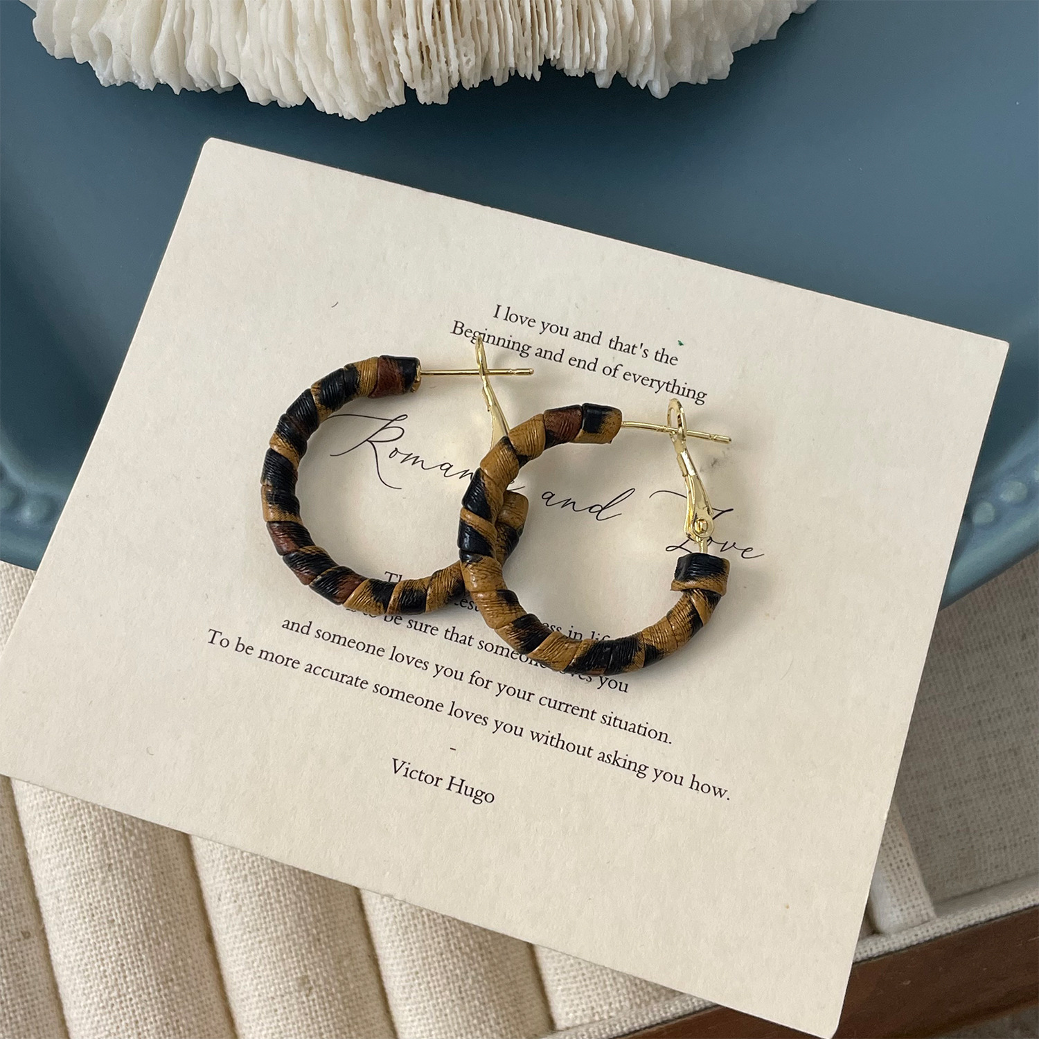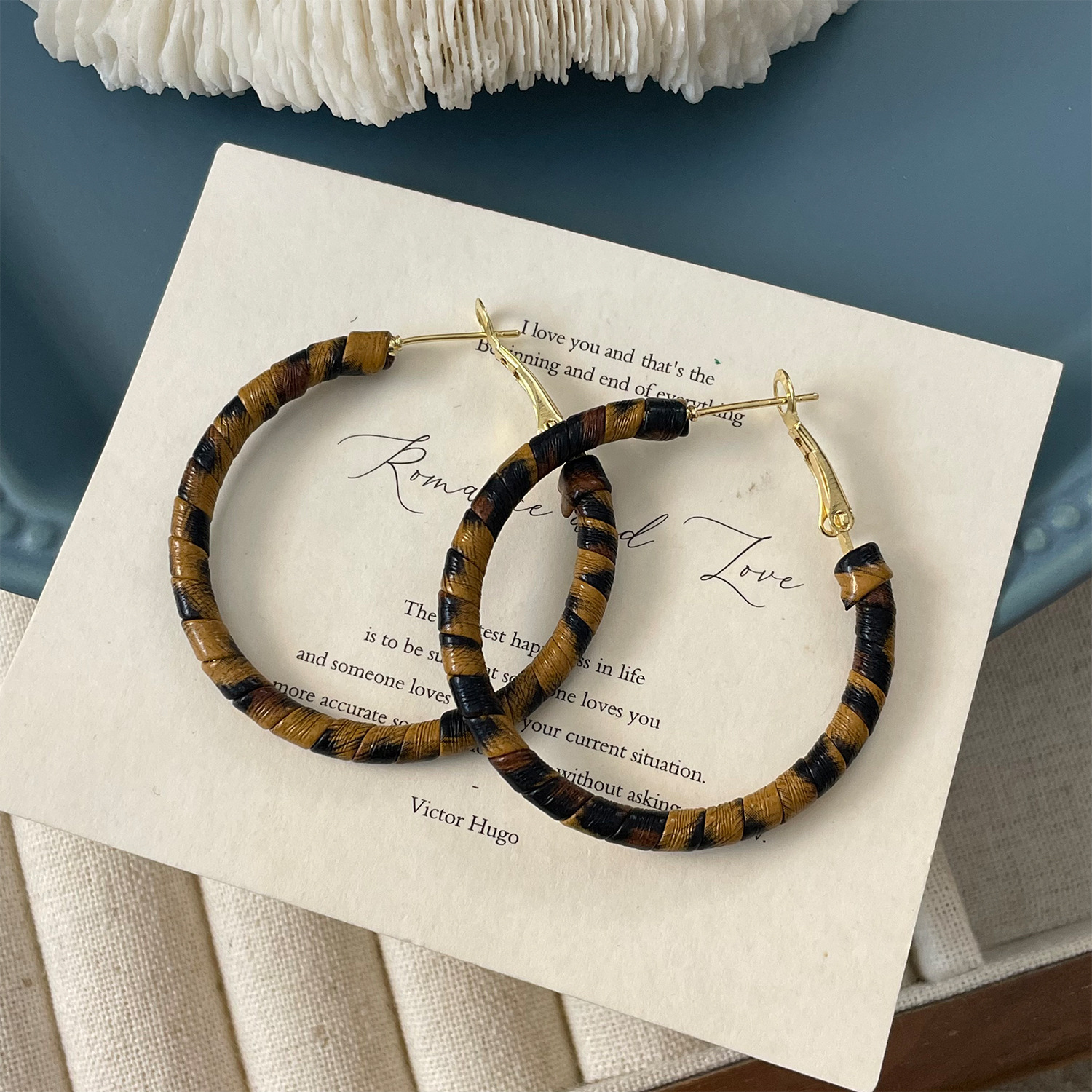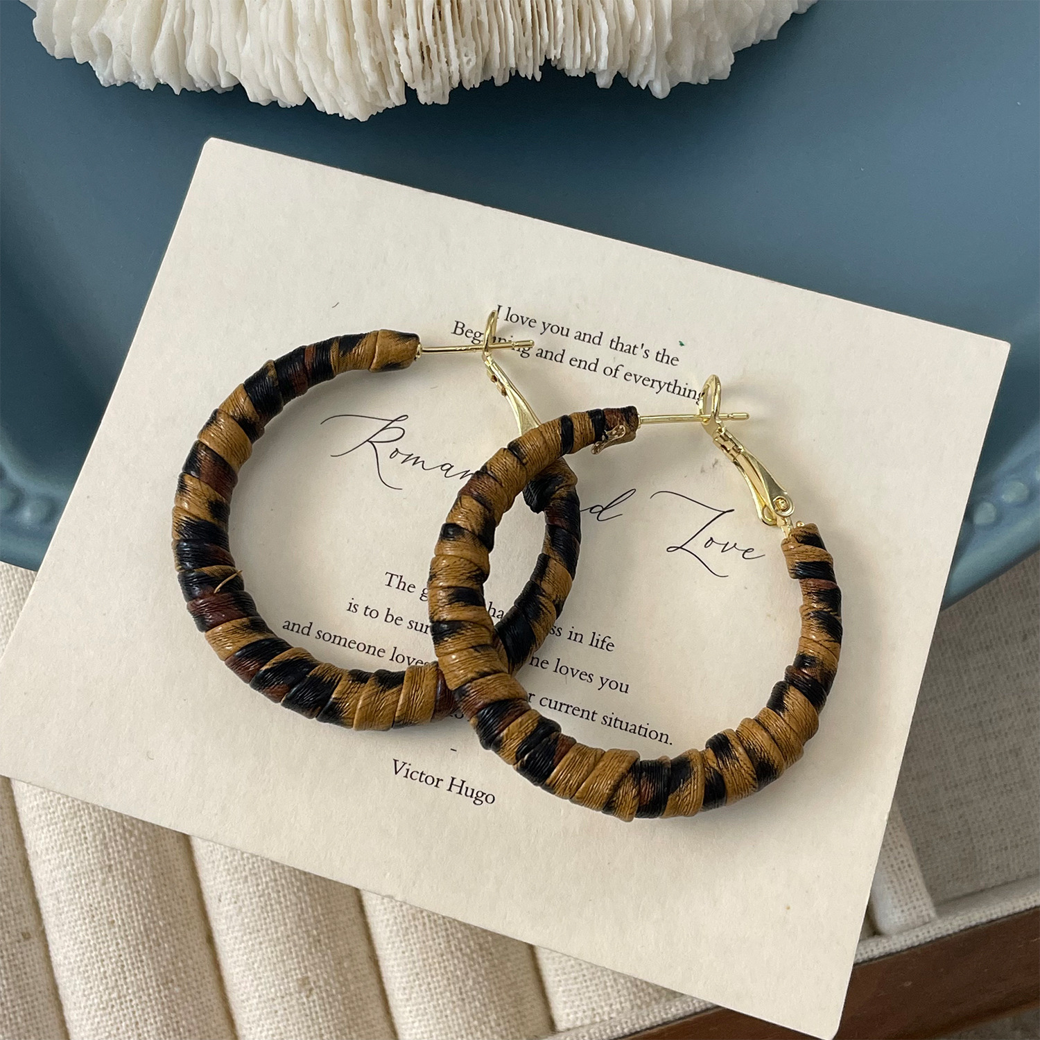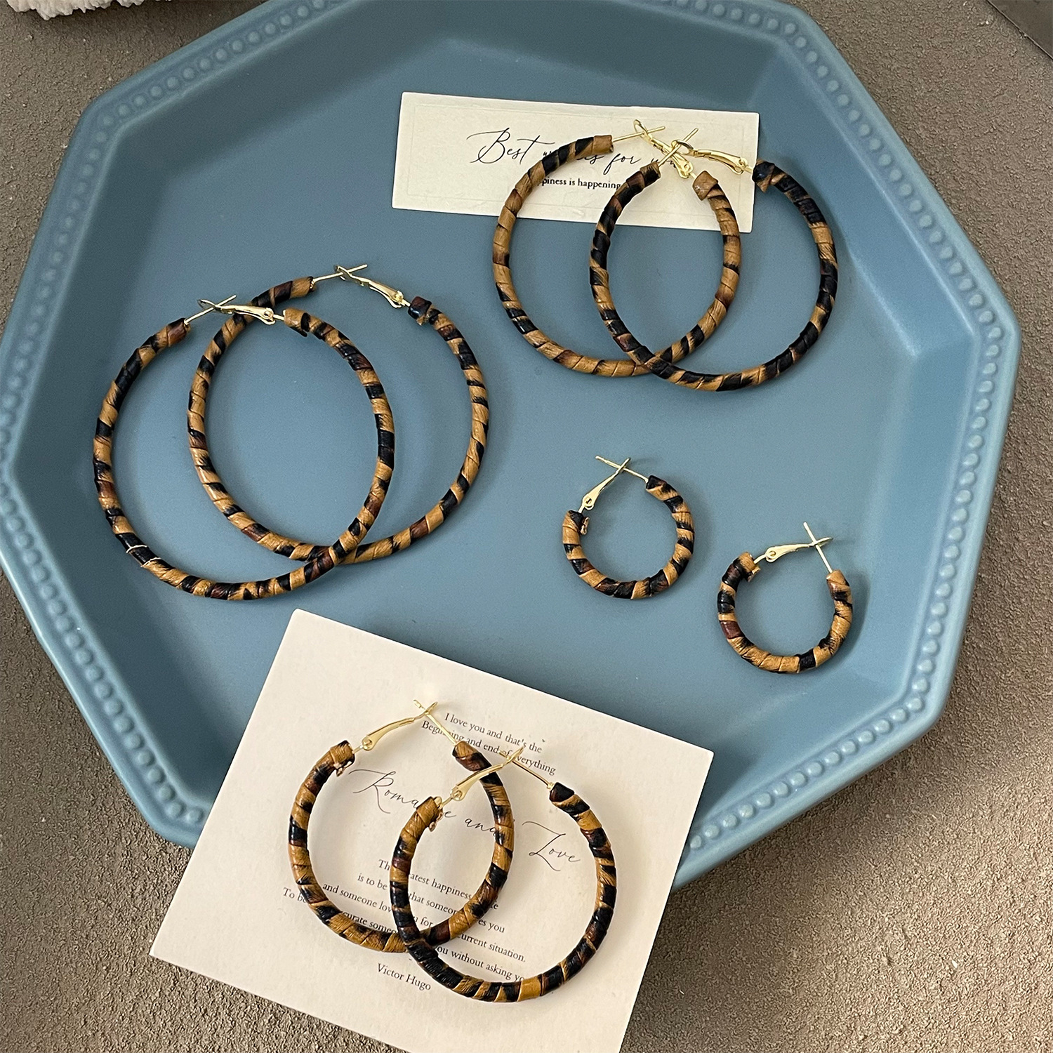 3758 fine circle 5cm classic leopard pattern circle 925 silver needle ear clip