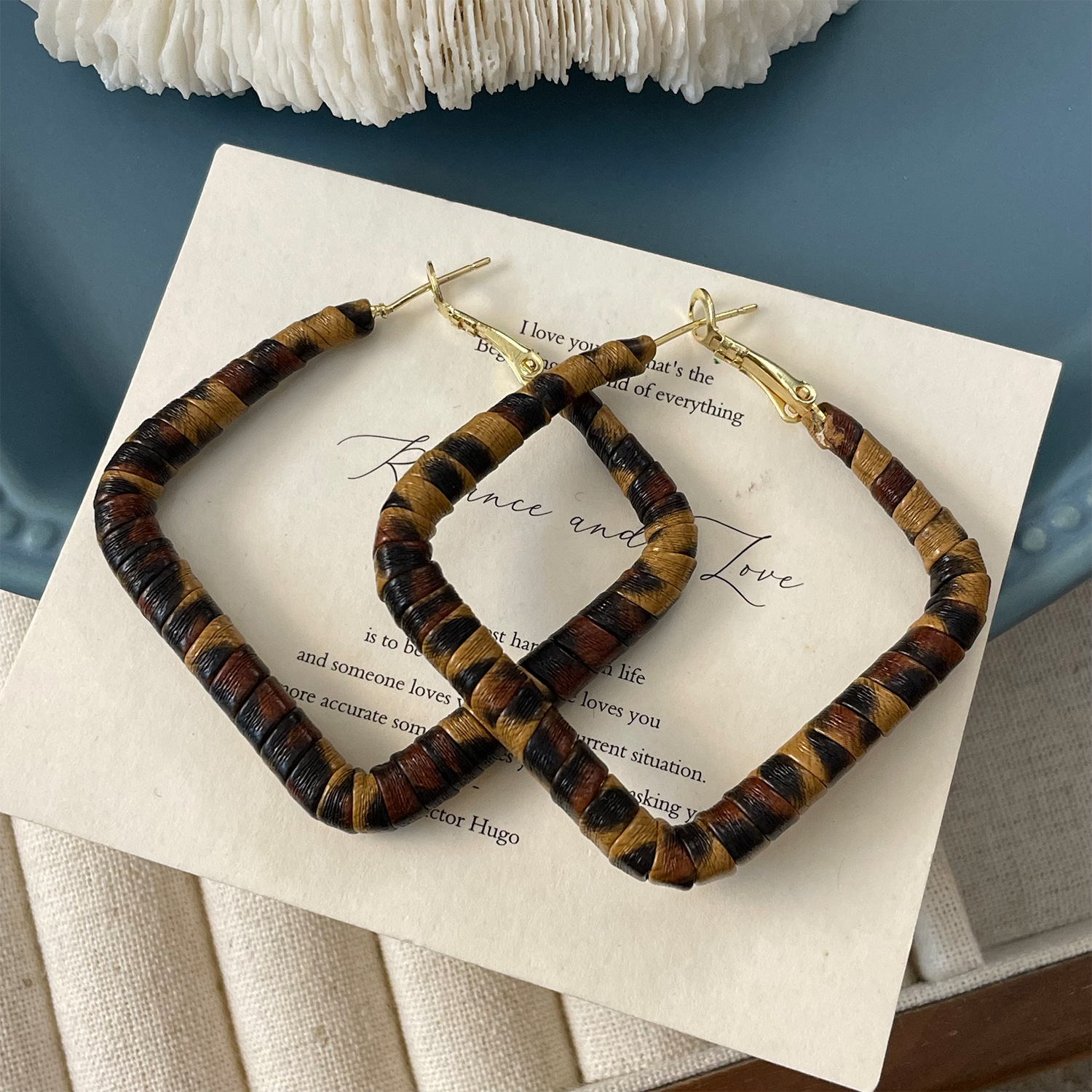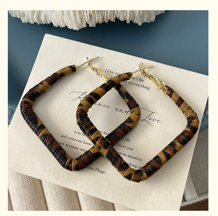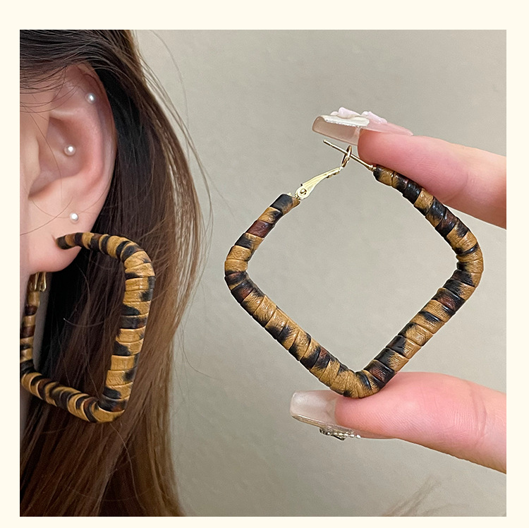 3791 square 4.5cm classic leopard pattern circle 925 silver needle ear clip