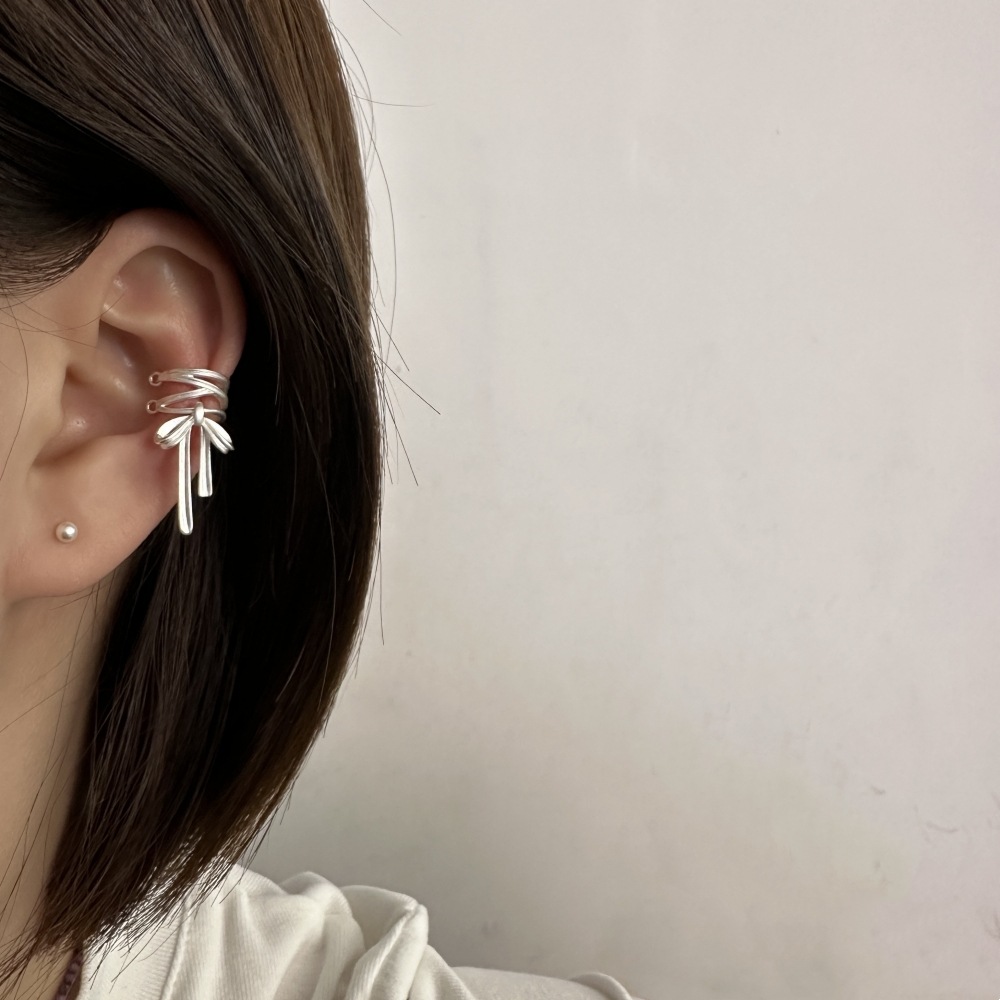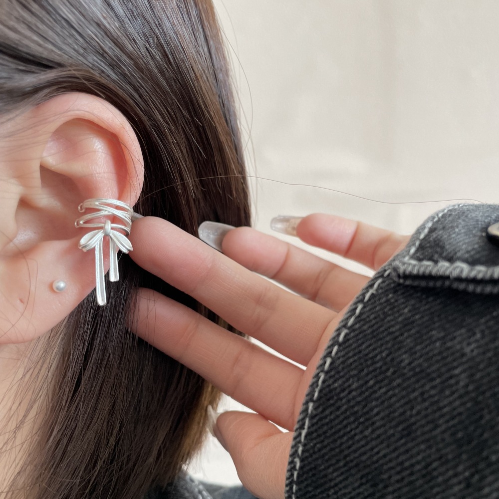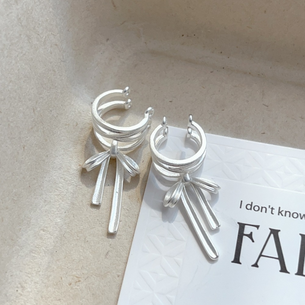 1730 silver lace bow ear clip pair