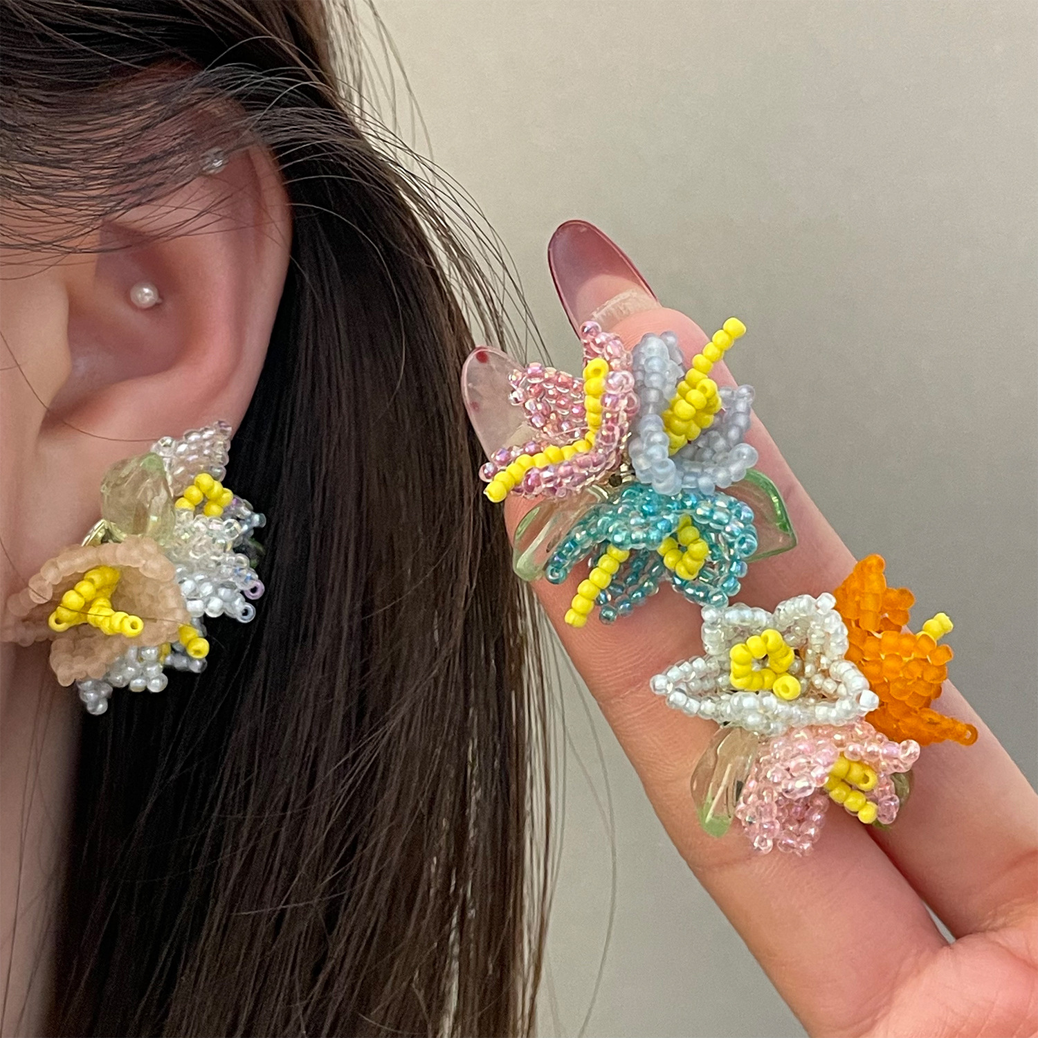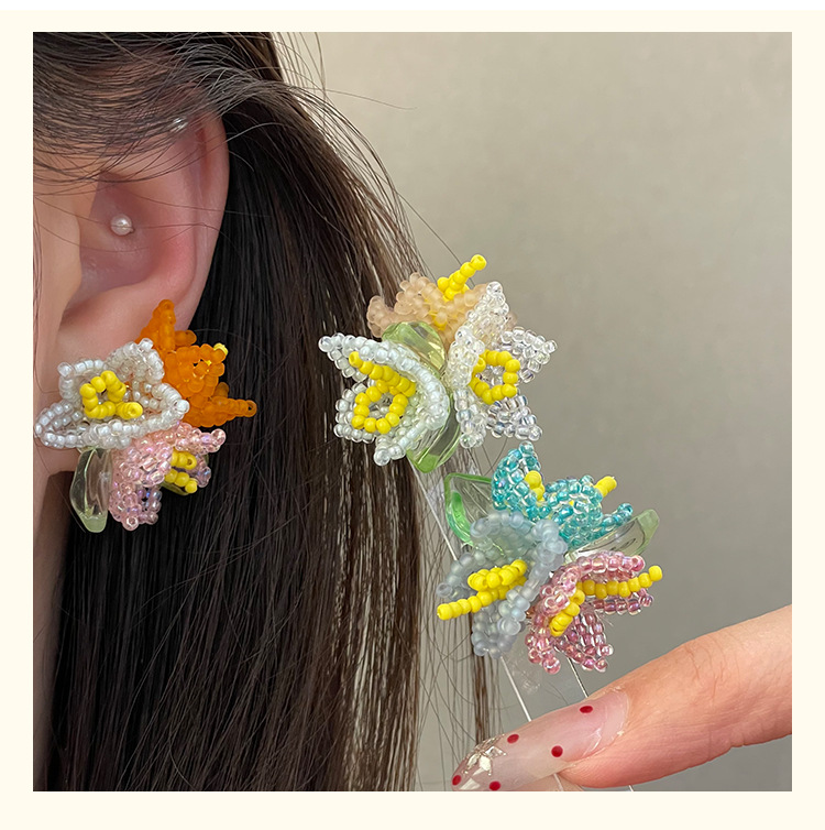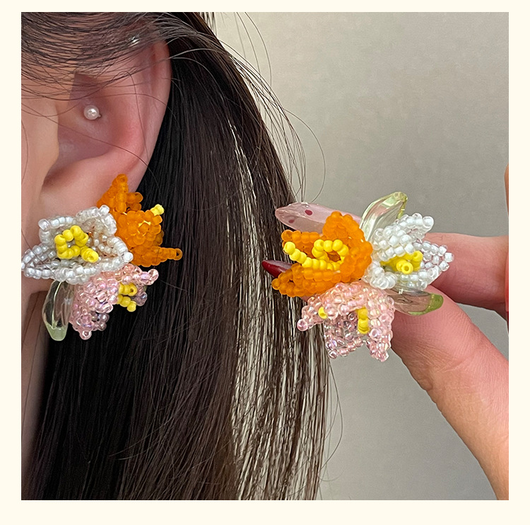 4251 orange flower ear clip