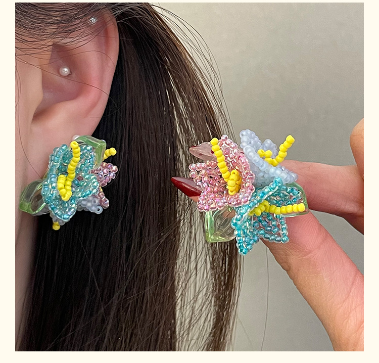 4251 blue flower ear clip