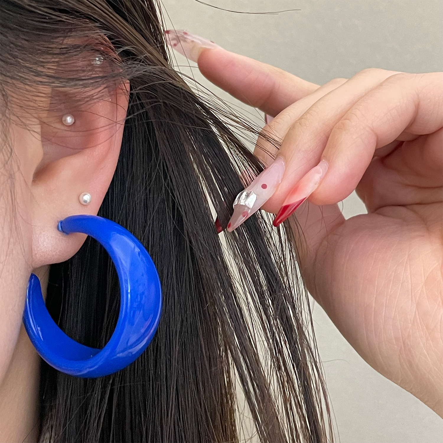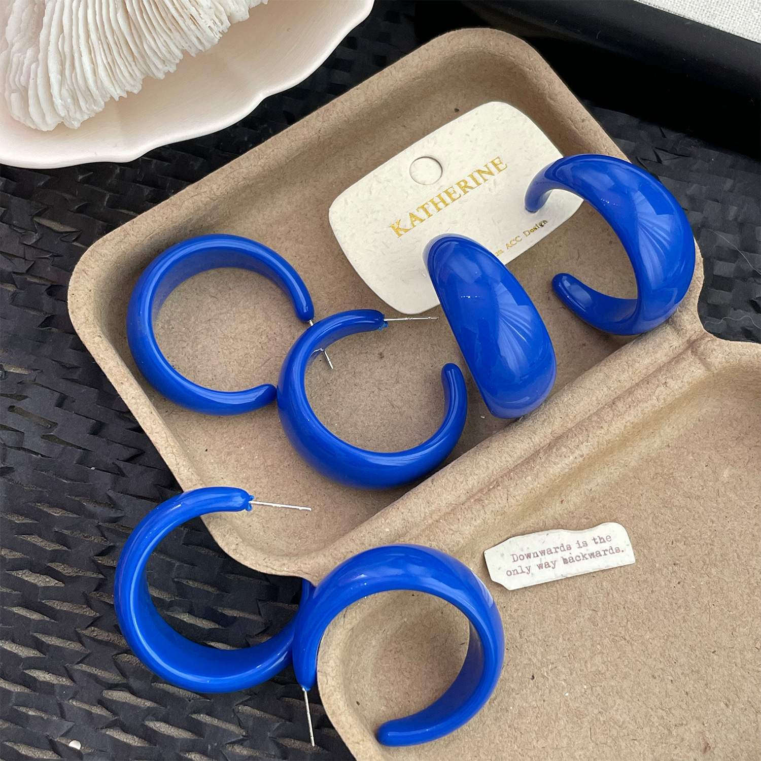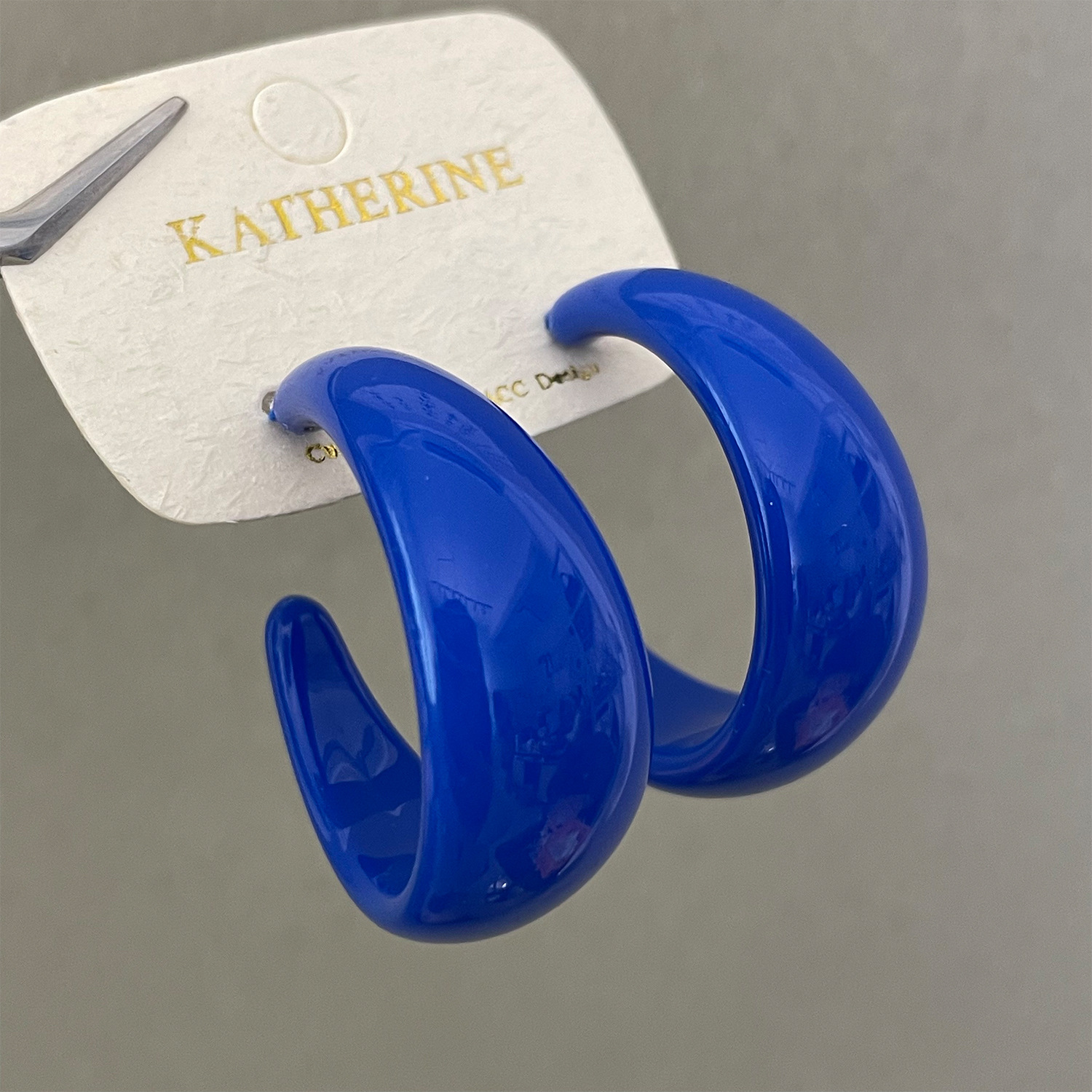 color: 4225 sapphire blue glossy c- shaped earrings